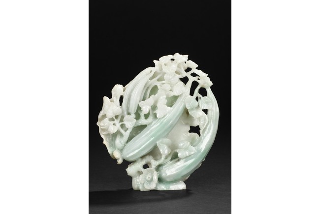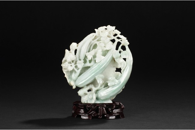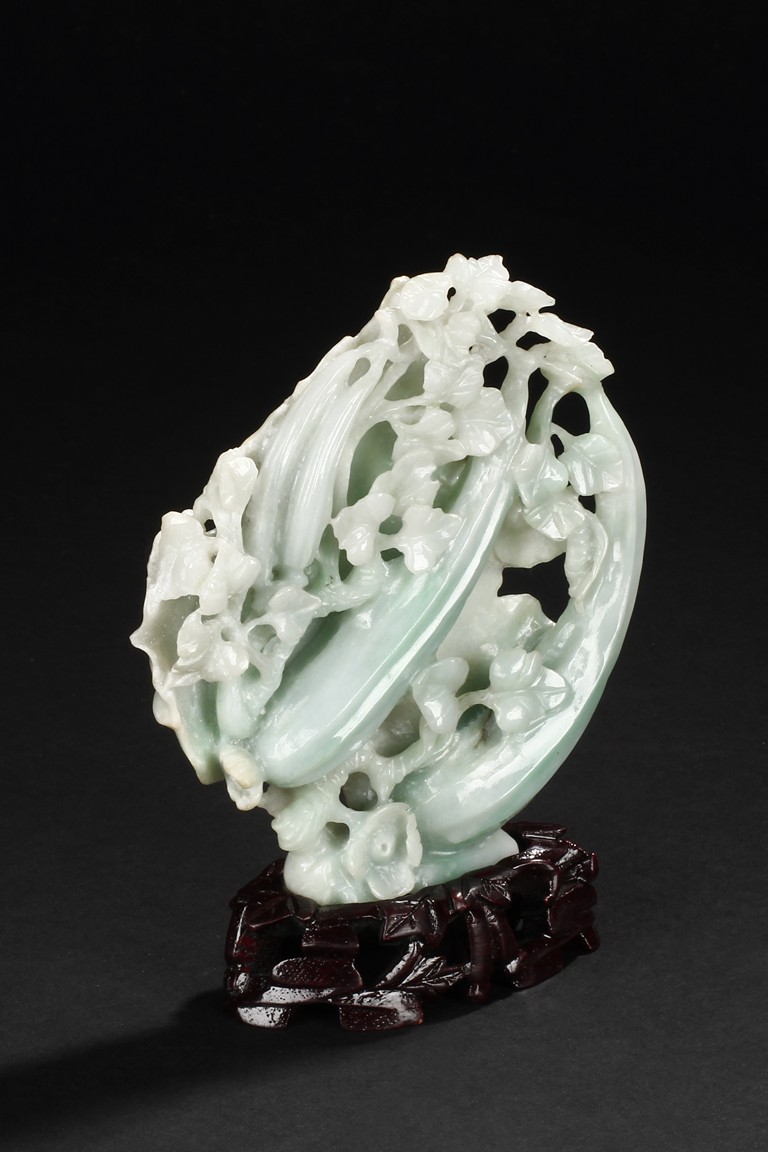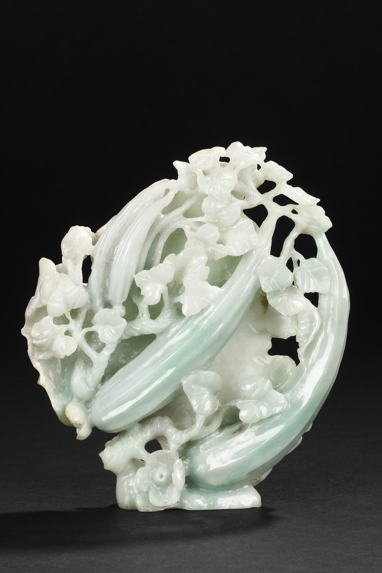 A JADEITE CARVING OF SPONGE GOURD 翠玉雕絲瓜擺件