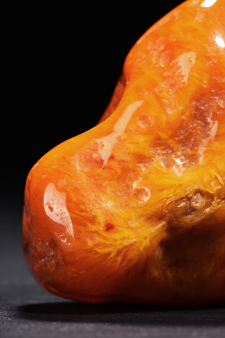Of naturalistic form, the boulder is of translucent caramel tone.