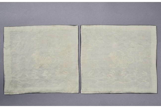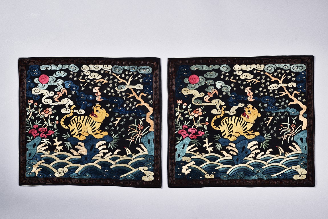 A PAIR OF EMBROIDERED SILK MILITARY OFFICIAL'S RANK BADGES 刺繡武官補子兩張