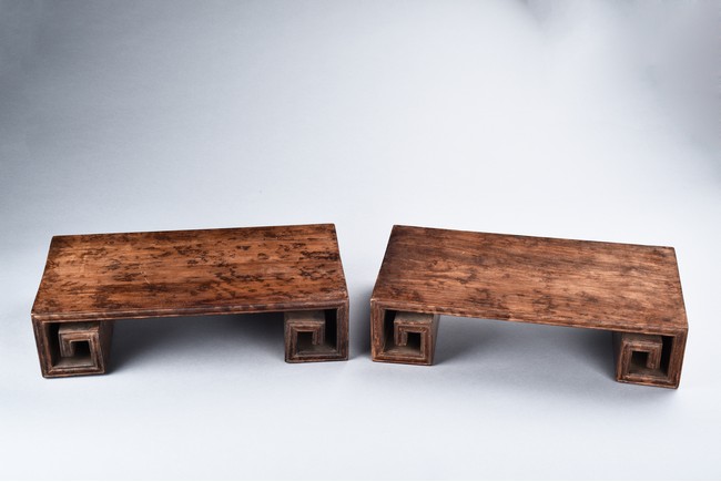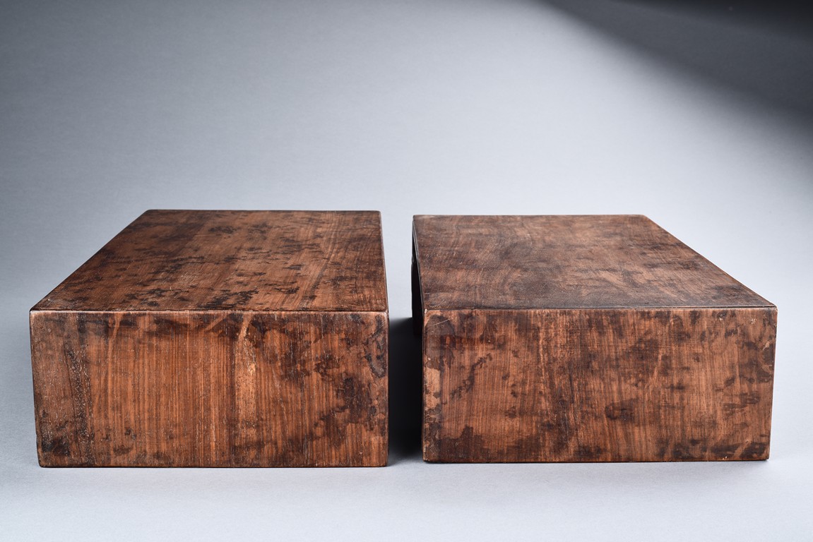 A PAIR OF RECTANGULAR HARDWOOD STANDS    硬木木座一對
