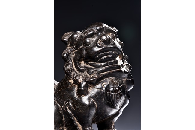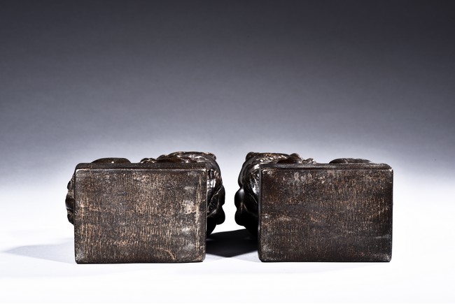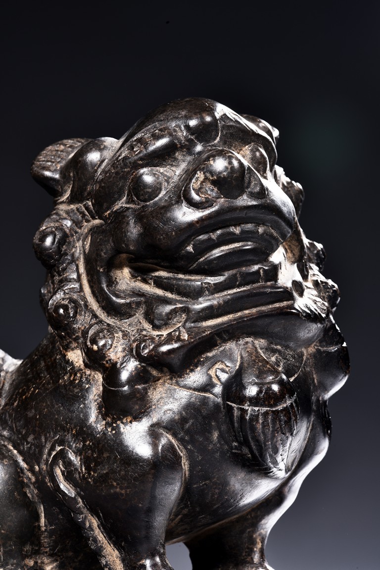 A PAIR OF STONE CARVED LION PAPER WEIGHTS 石雕小獅子一對