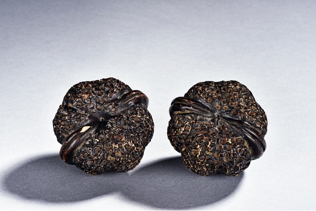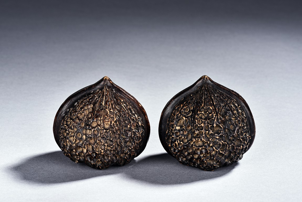 A PAIR OF YIXING WALNUTS 紫砂核桃一對