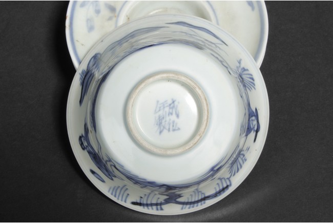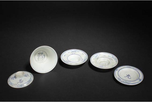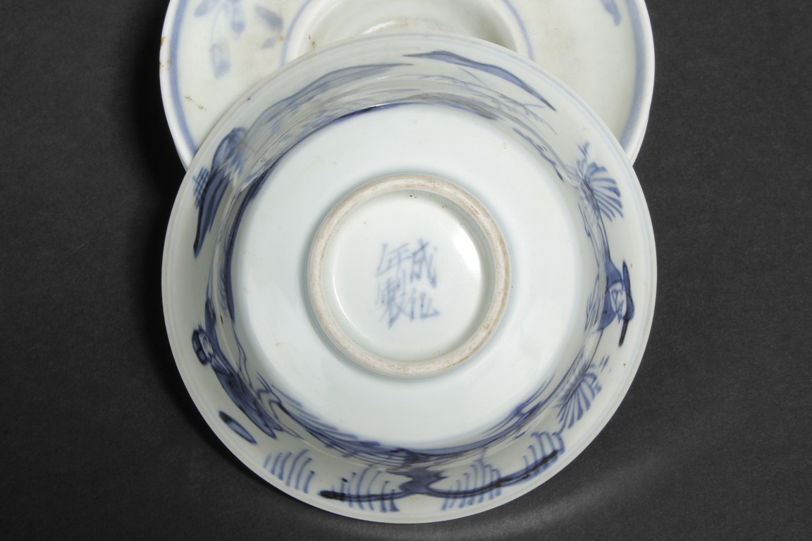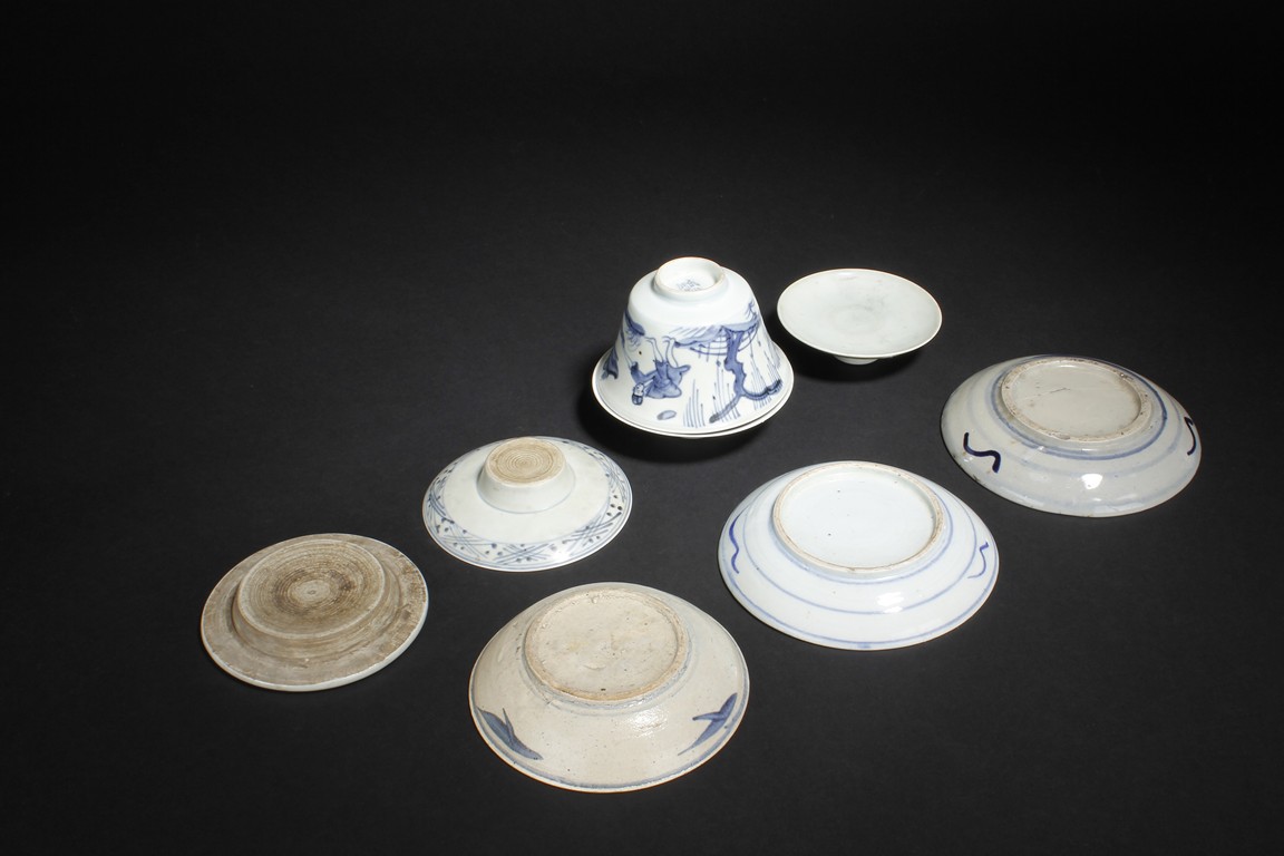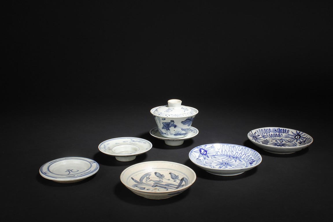 A SET OF BLUE AND WHITE DISHES 青花杯碟一組