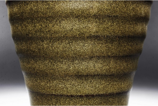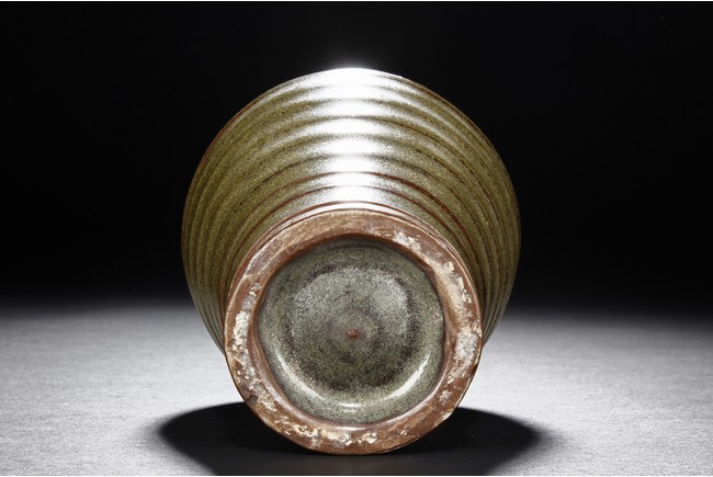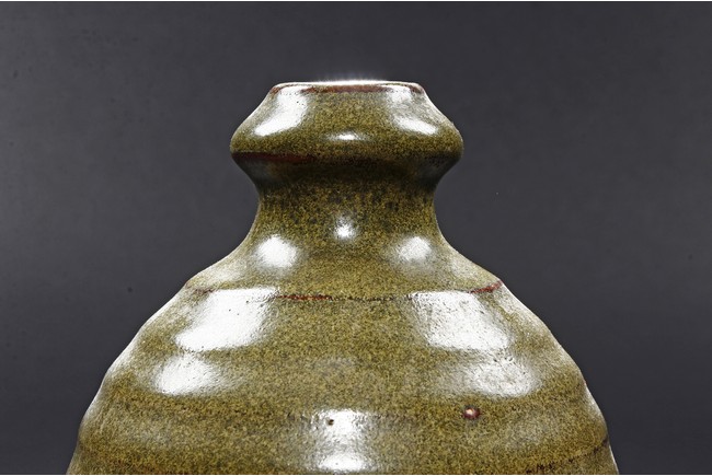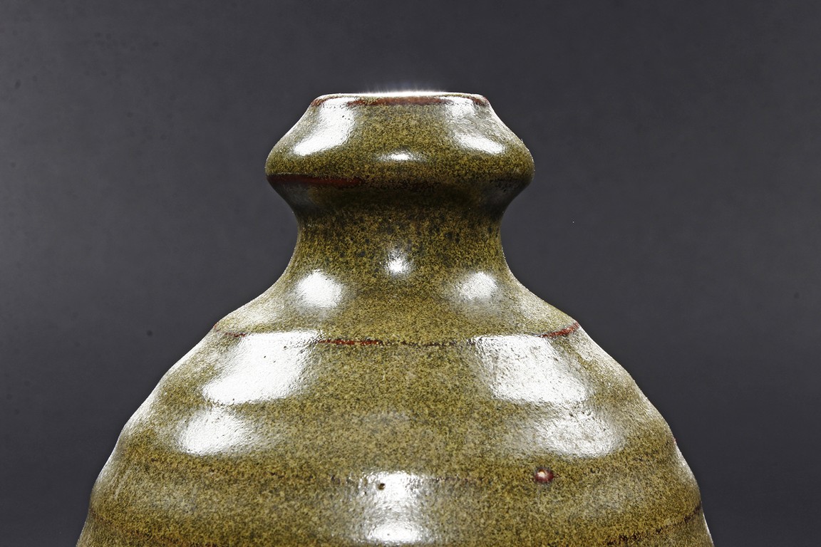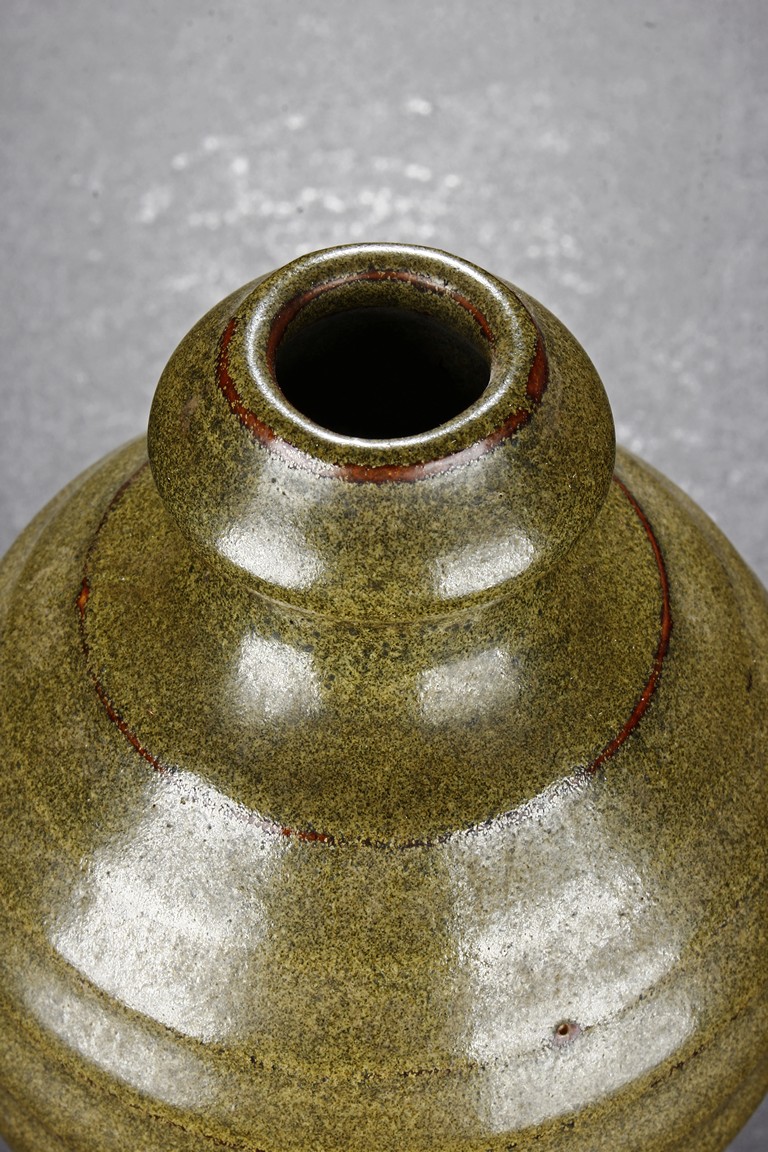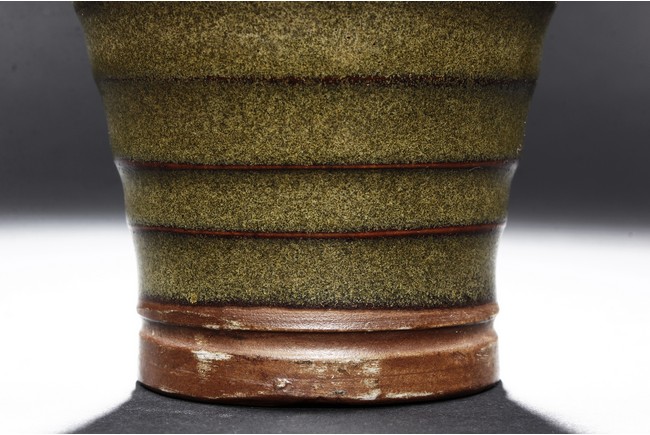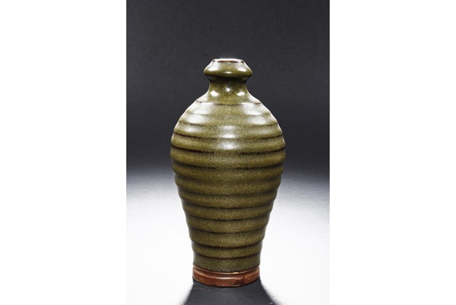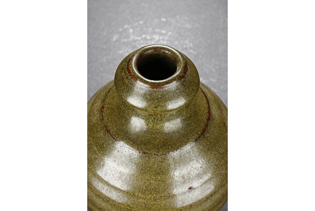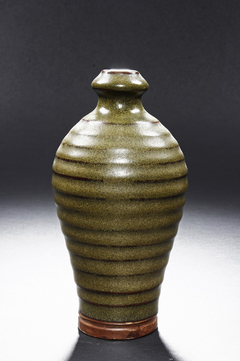 The vase is of baluster form, with waisted neck and layered body, the tea-dust glaze covers the vase, the bottom glazed in brownish-red. Qing Dynasty period.