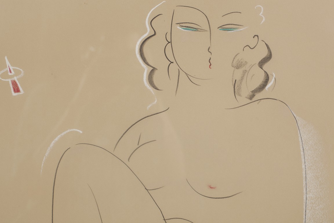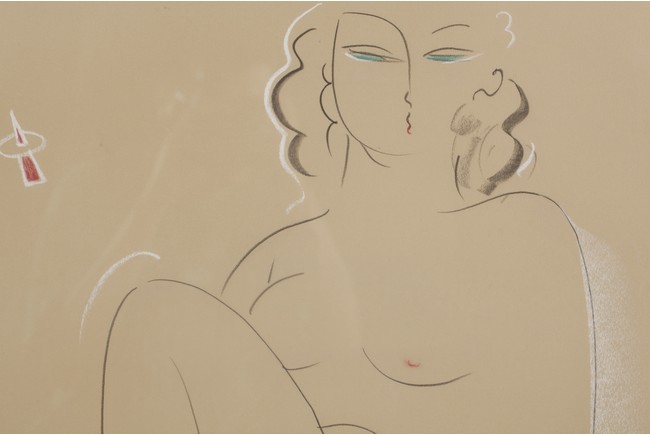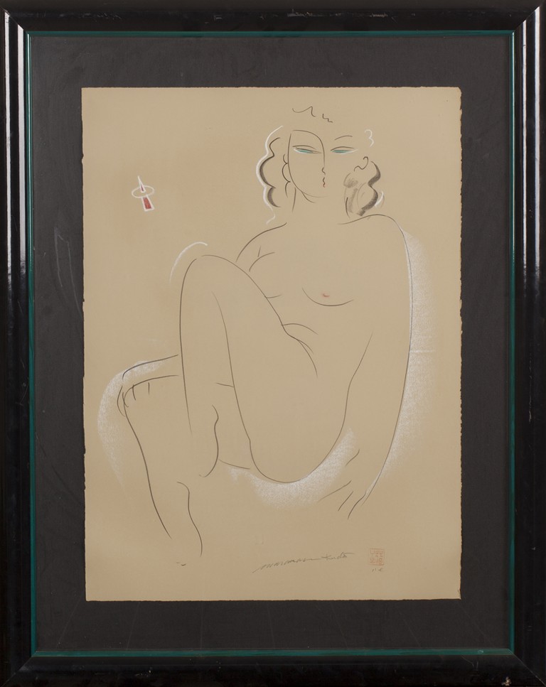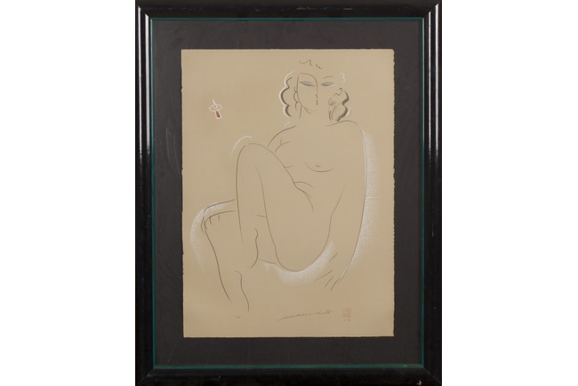 A sketch of a bare lady drawn in a slightly abstract way. It bears artist signature following with a seal on the bottom.