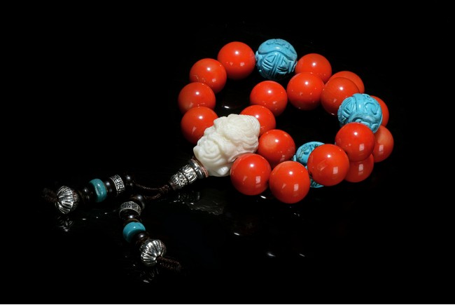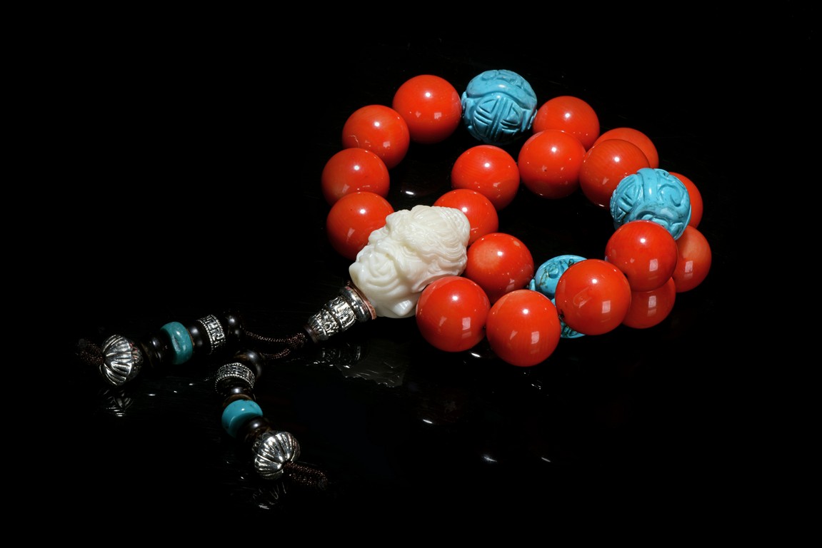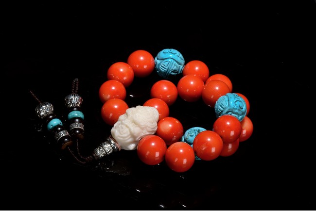 AN CORAL BEAD ROSARY BRACELET 珊瑚手串