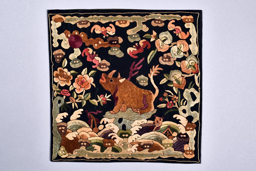 AN EMBROIDERED SILK OFFICIAL'S RANK BADGE 清 刺繡武官補子