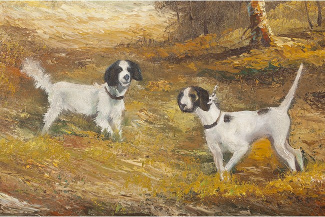 PAINTING OF FOREST AND DOGS SCENERY 風景油畫