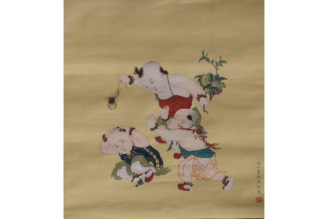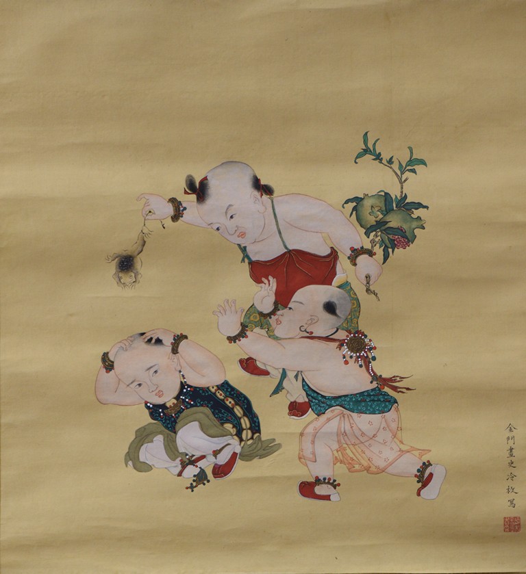 A COLOR AND INK ON PAPER 'CHILDREN' PAINTING 工筆人物畫