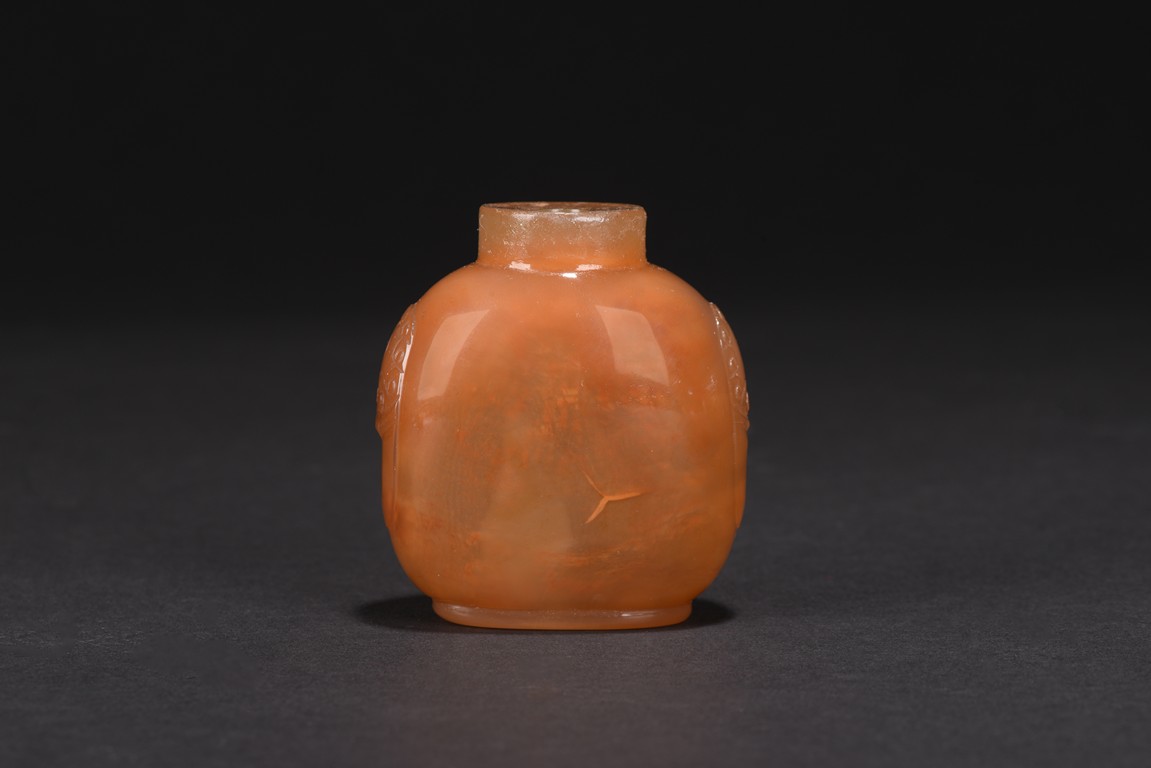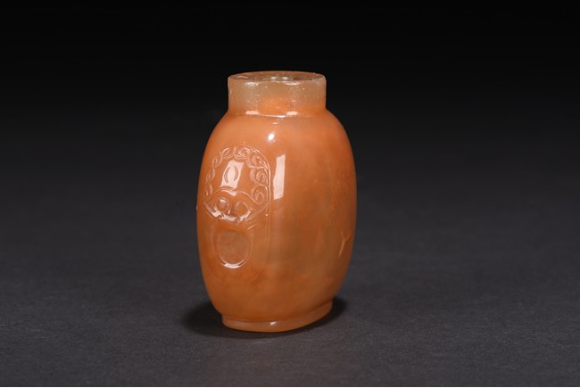 Of rounded rectangular form, the shoulders carved with mock lion-mask ring handles, the surfaces unadorned and polished to display the ideal beauty of the stone. Qing Dynasty period.