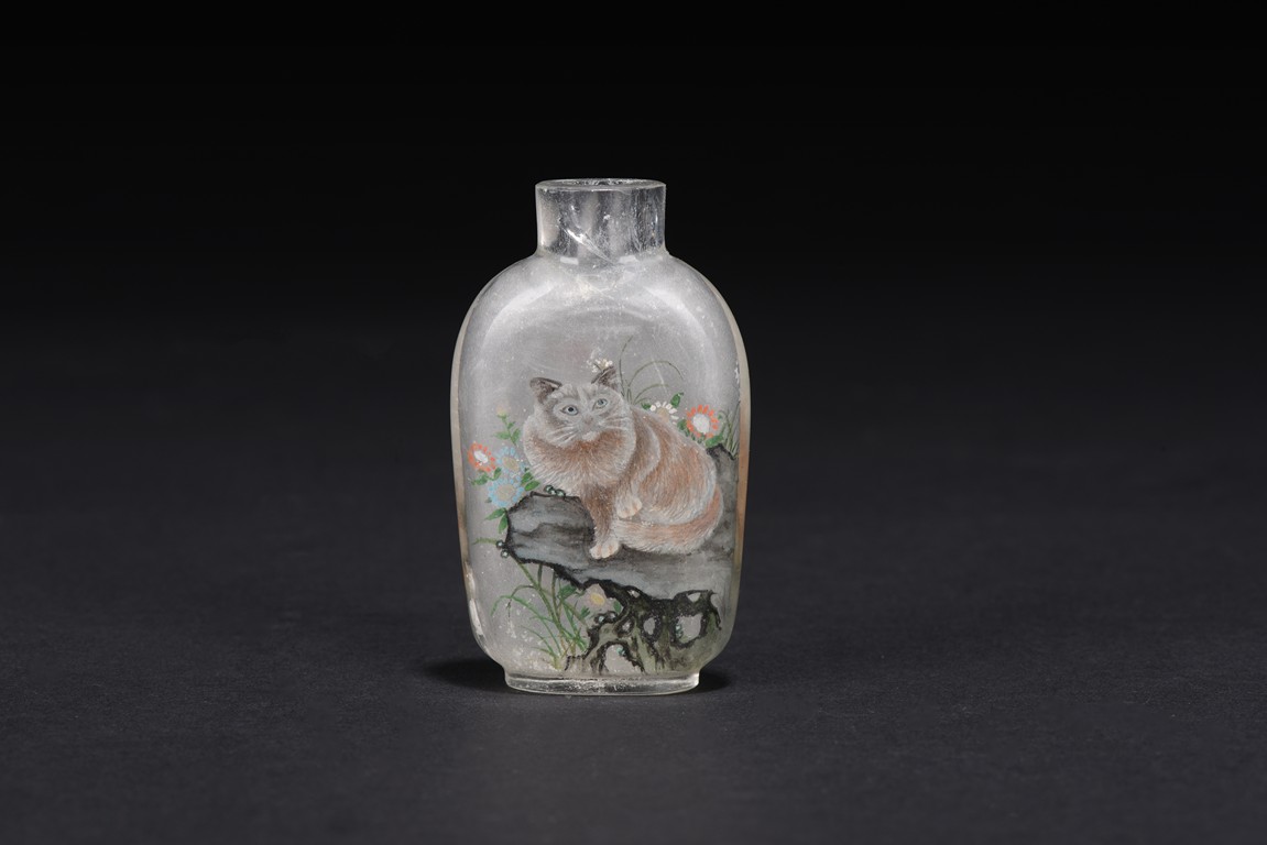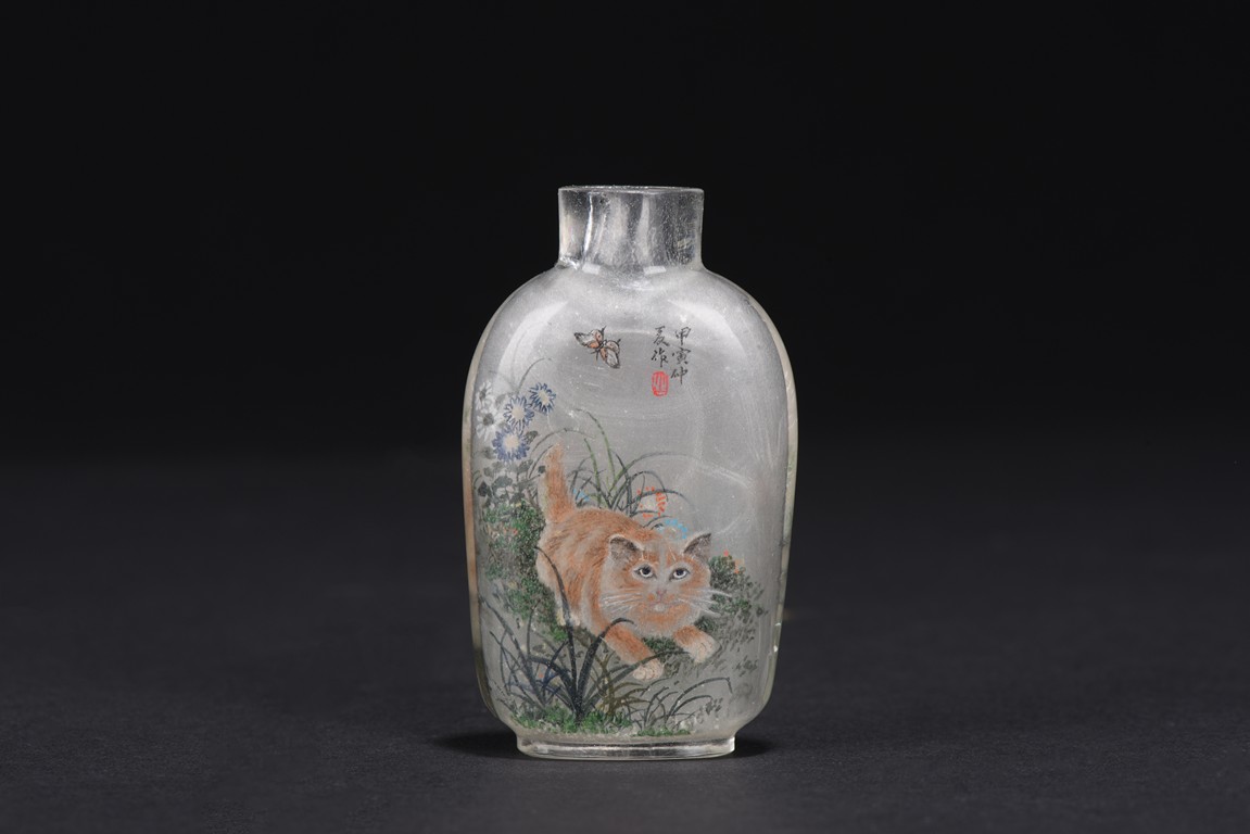 Of slightly tapering form, painted with cat playing with butterfly in a garden setting, with inscription and mark. Republic period.