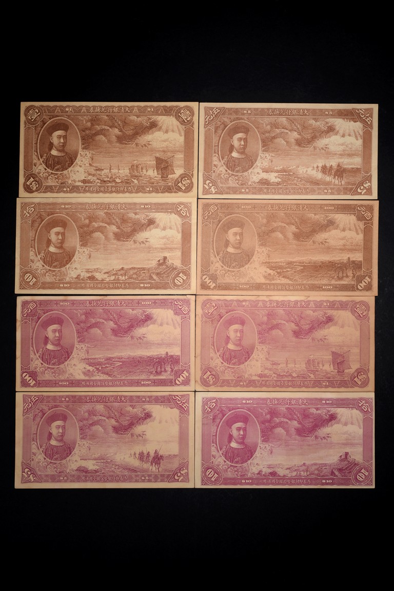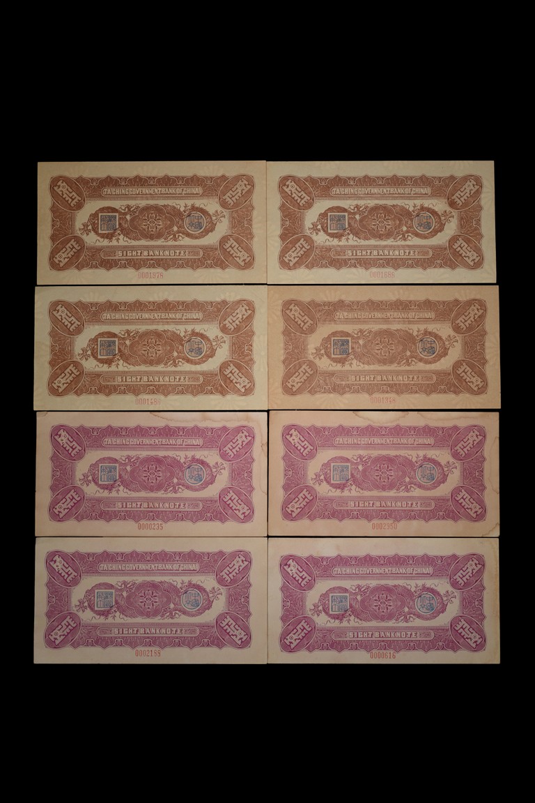 EIGHT DA CHING GOVERNMENT BANKNOTES 大清銀行兌換劵兩組八張