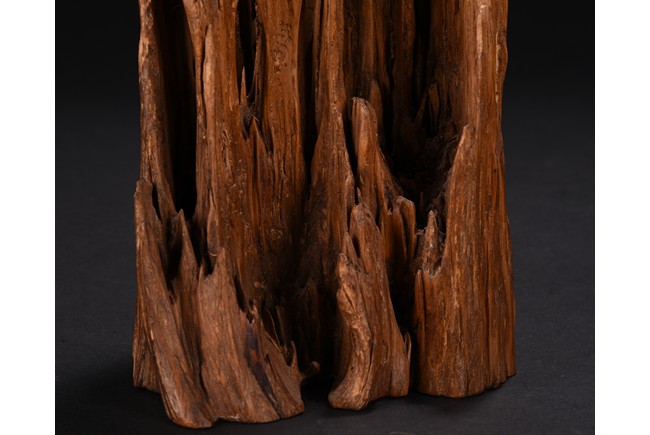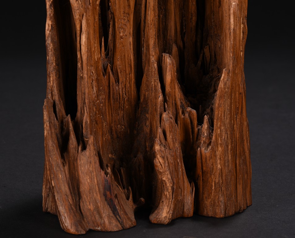 Of naturalistic form, the agarwood is modelled in the form of a tall scholar's rock.