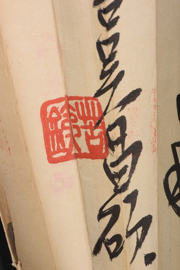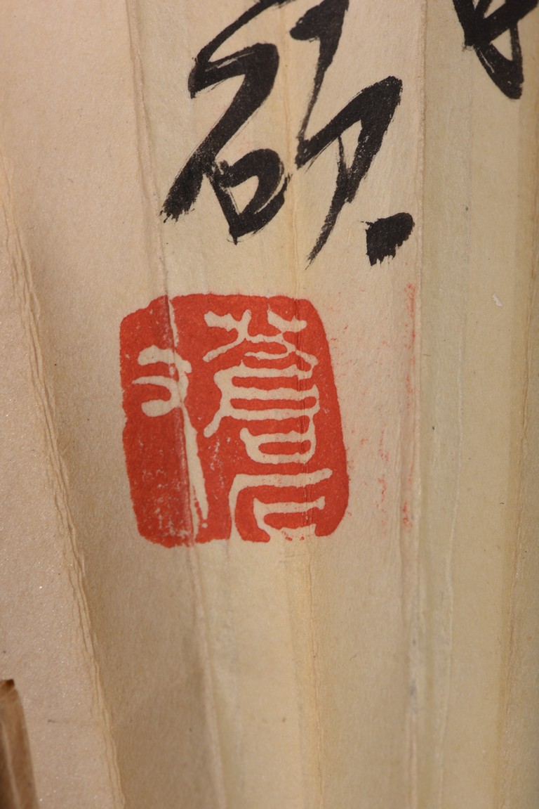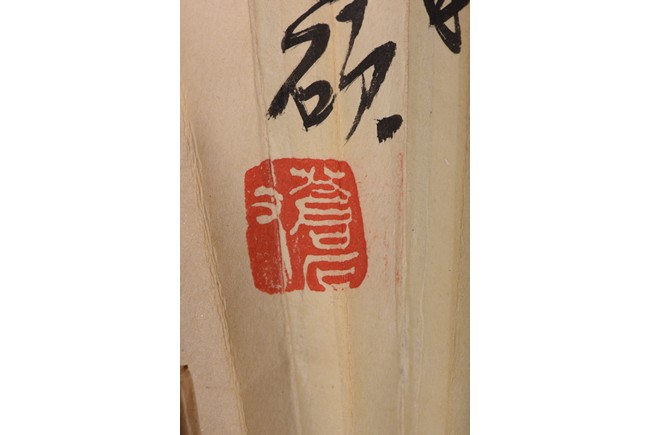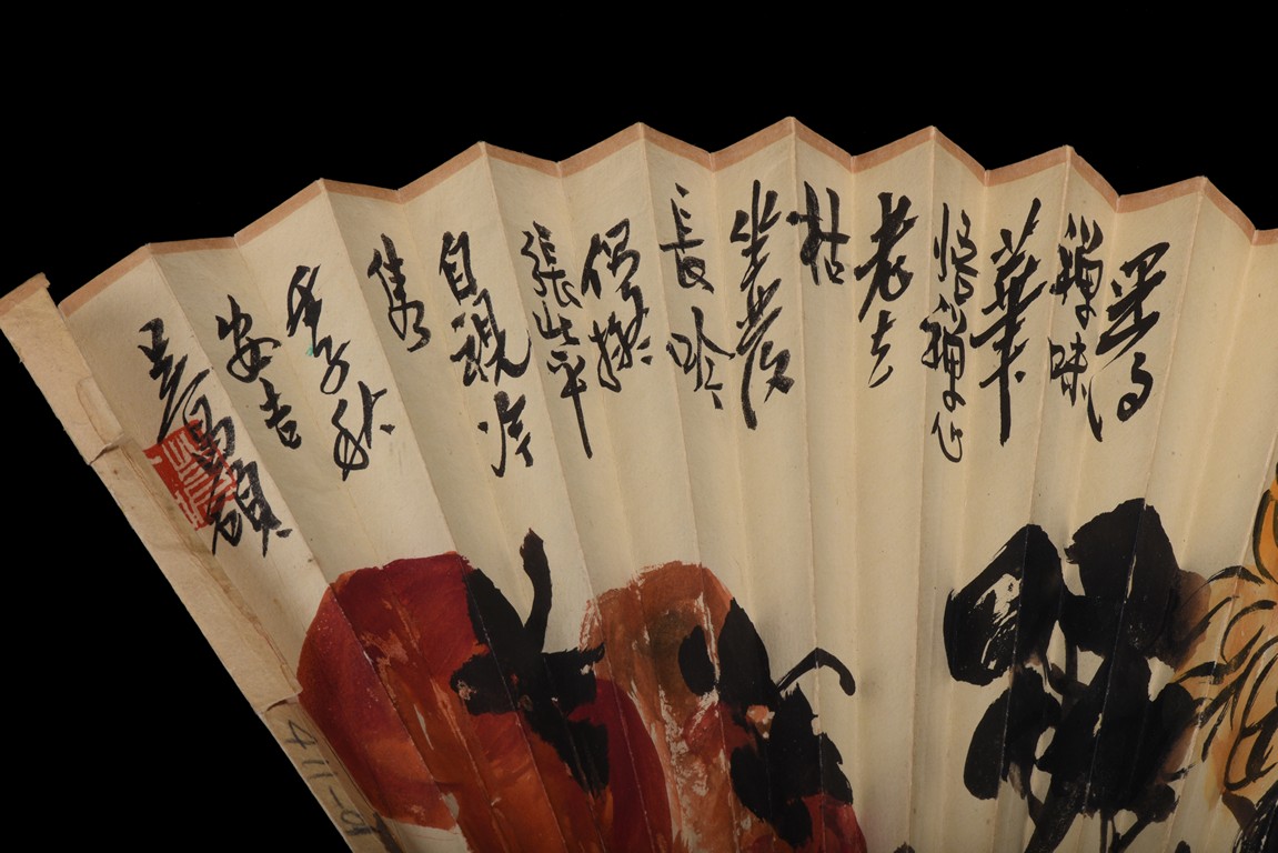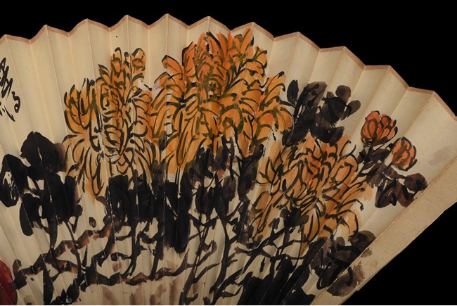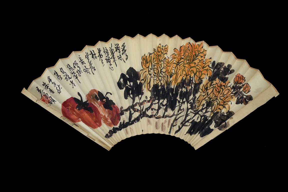 Chrysanthemum and Persimmon. Ink and color on paper. Inscribed, signed, and one seal of the artist. The reverse with Colophon, signed, and with two seals of the artist.