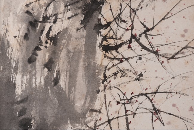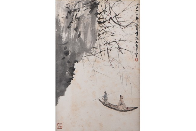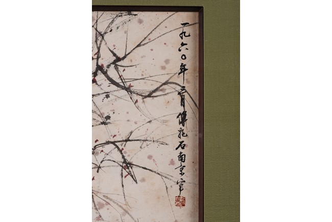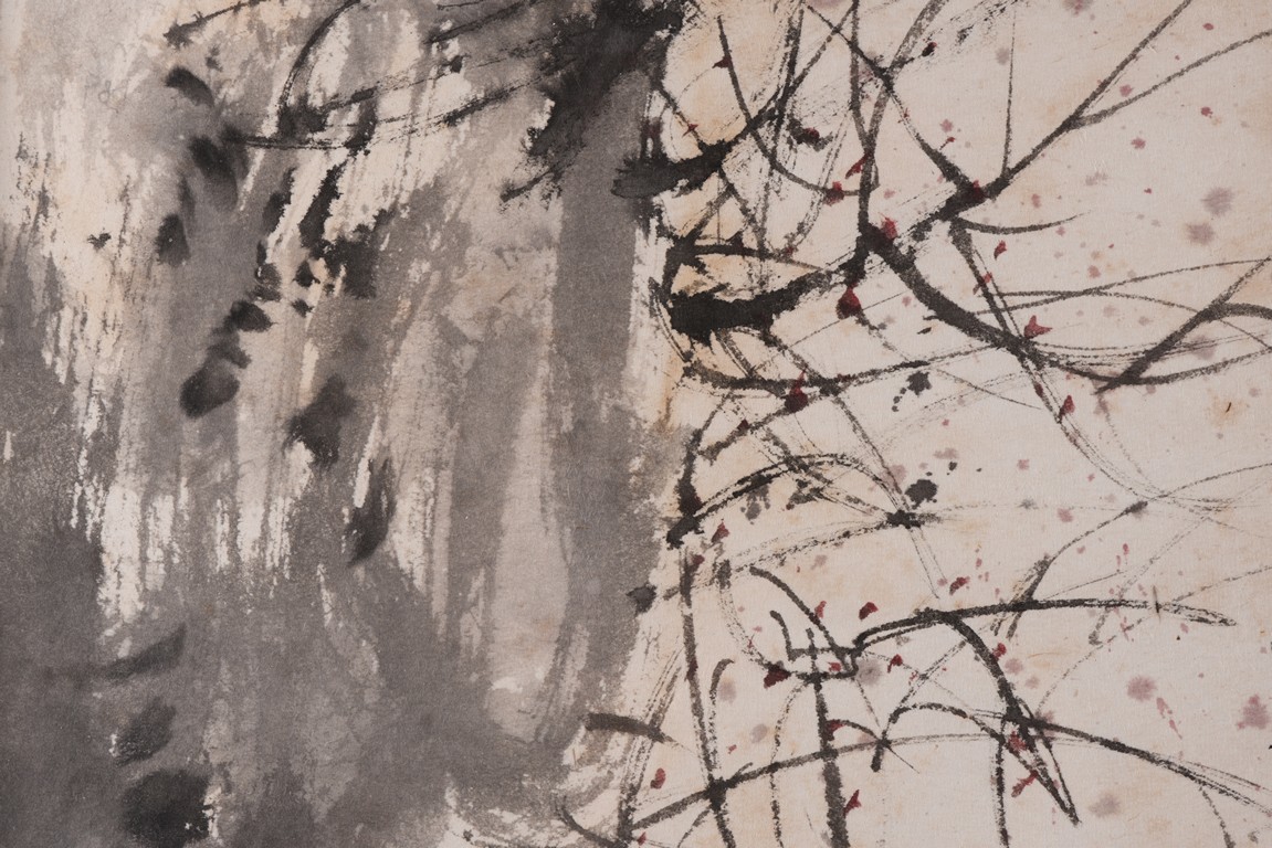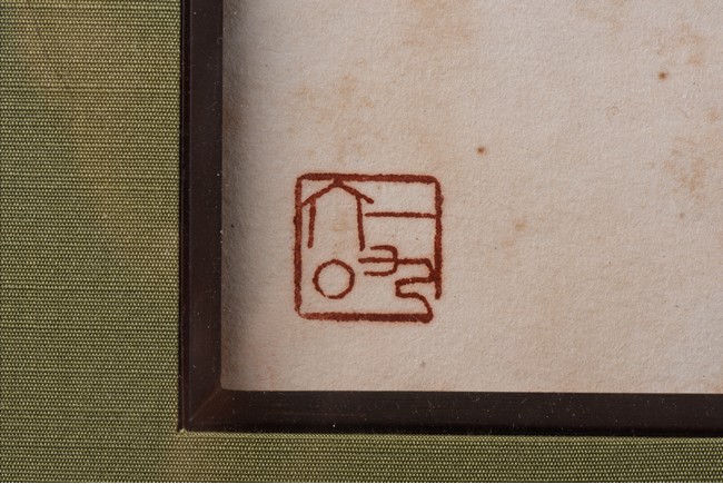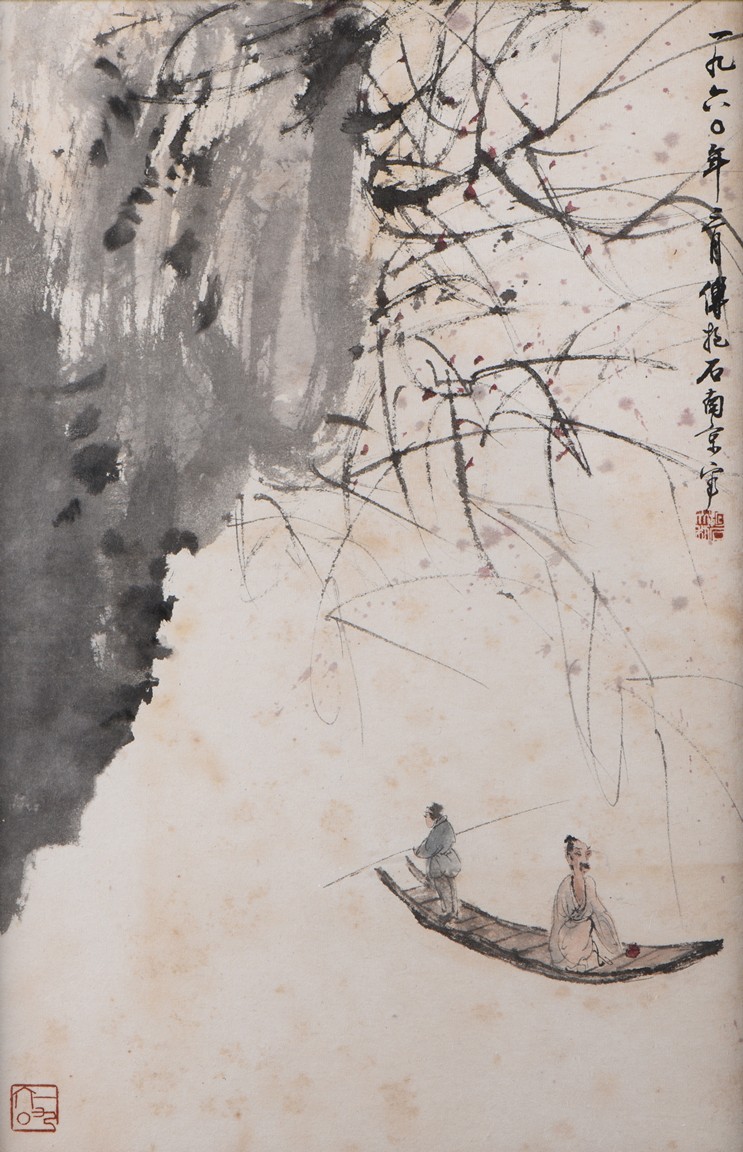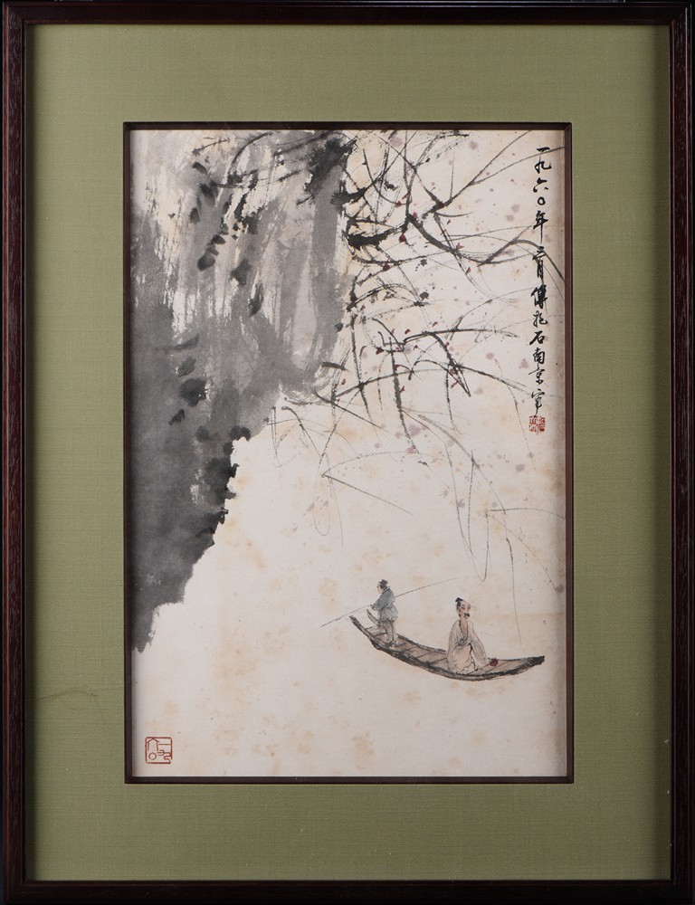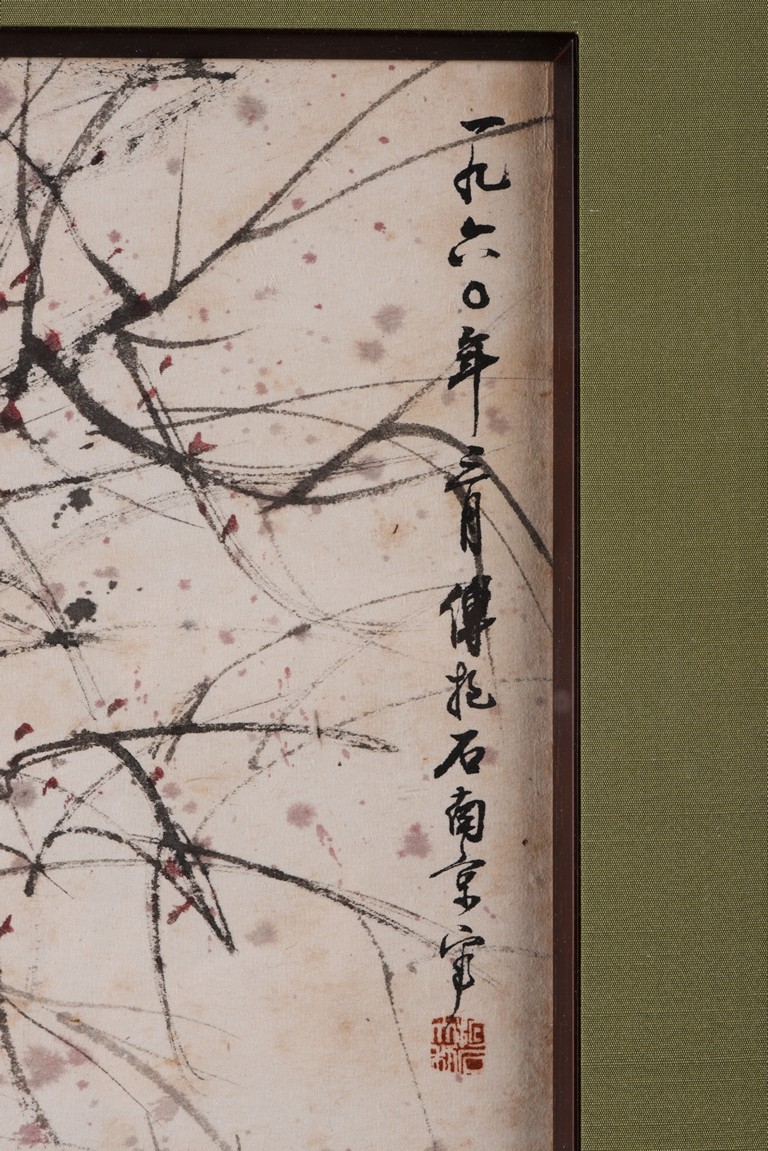 Ink and color on paper. Framed. Red Cliff. Signed and with two seals of the artist. Dated March 1960.
