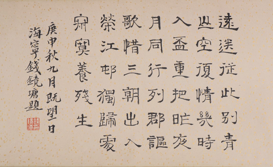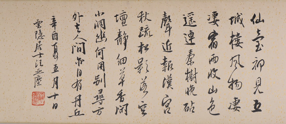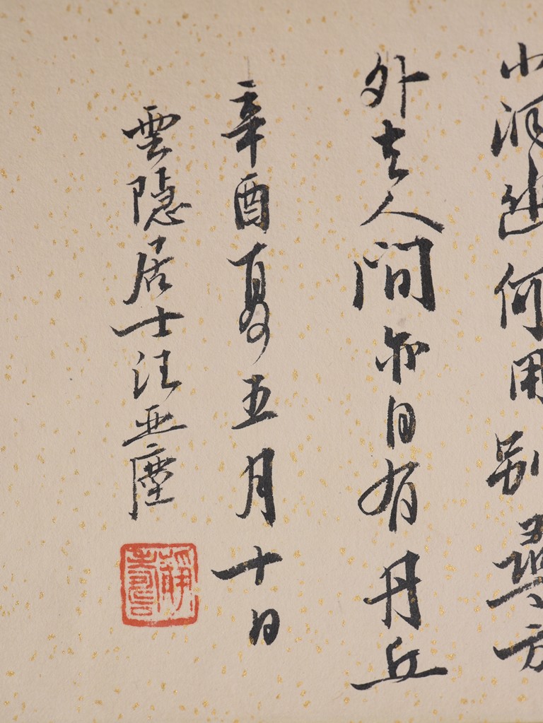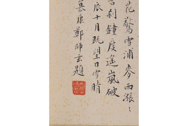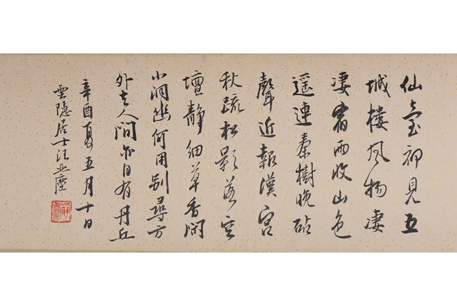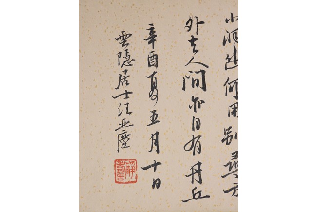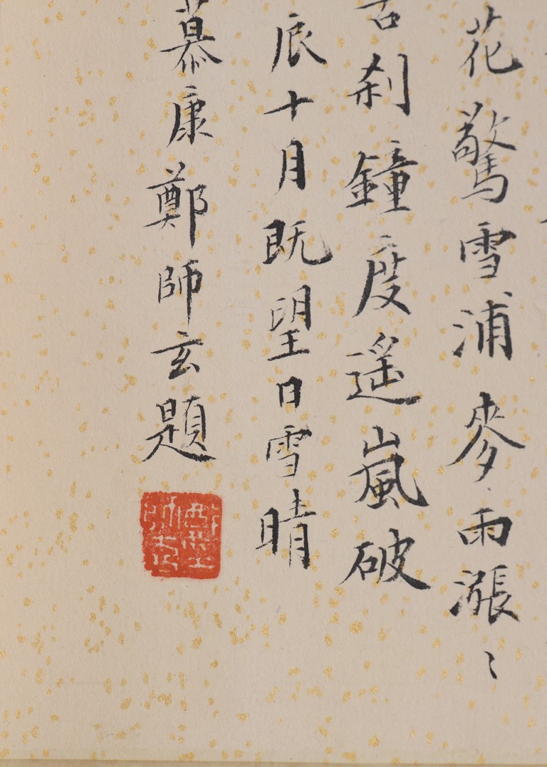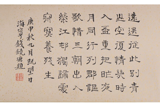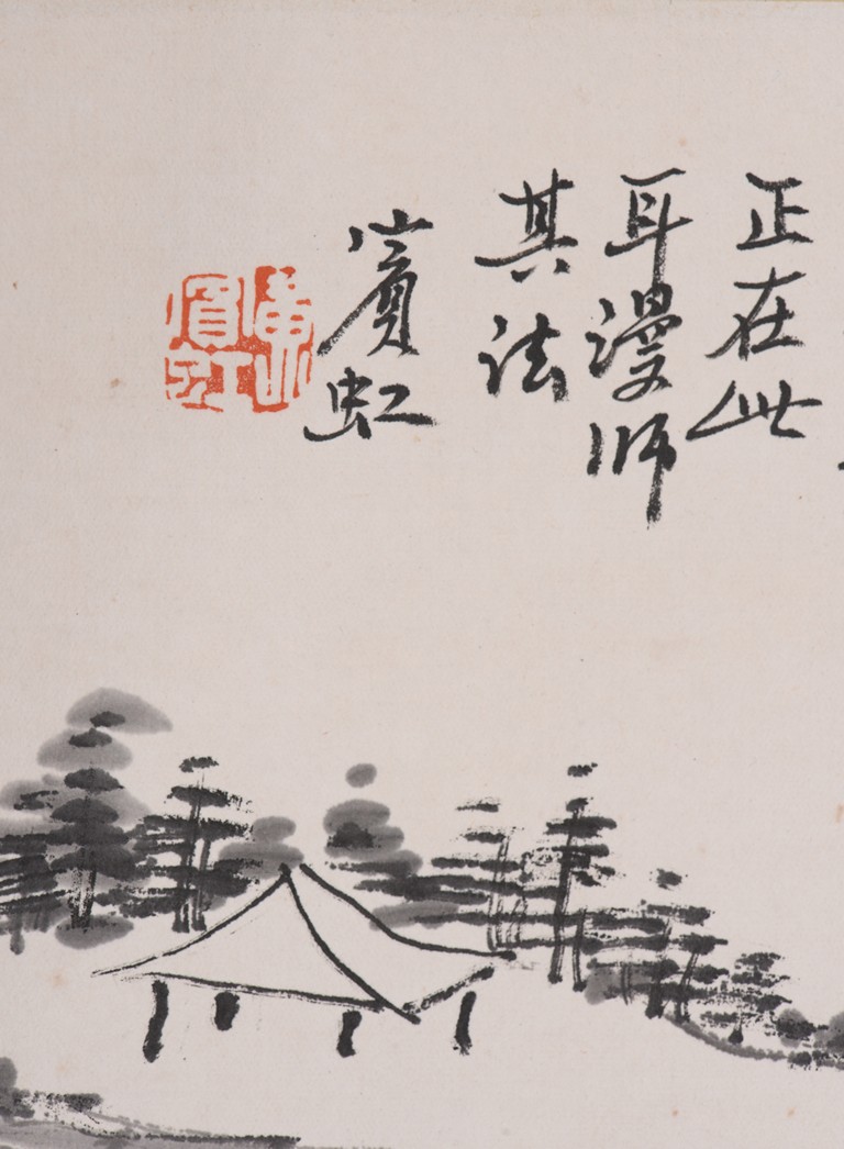 Ink on paper. Handscroll. Landscape. Inscribed and signed, with two seals of the artist. Frontispiece titled by Zhu Lesan. Colophon signed by Zheng Shixuan with one seal.