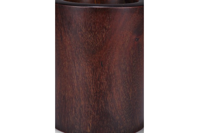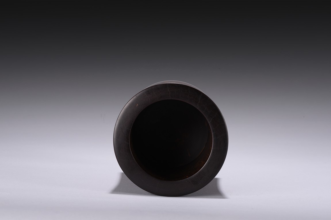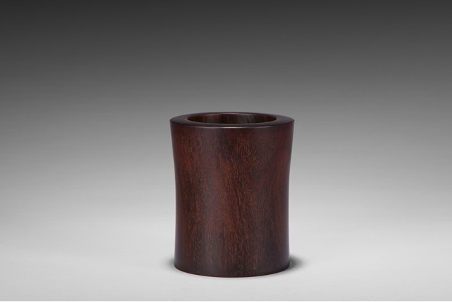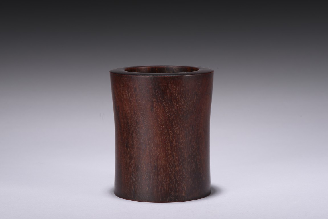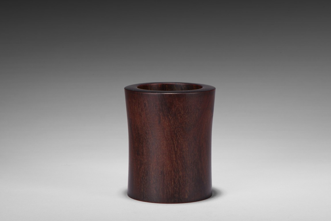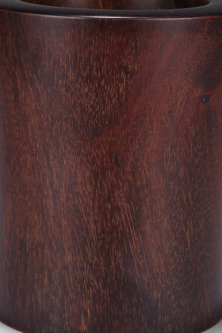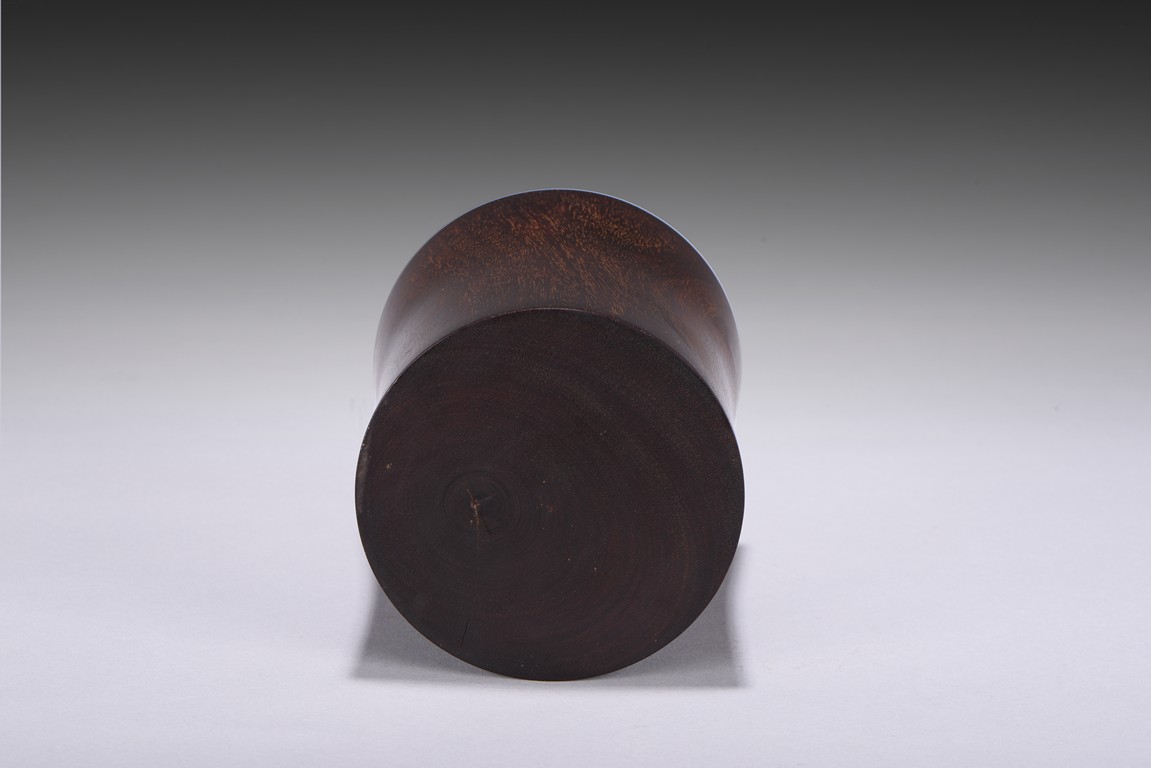 Of circular section, sides slightly flared, the tightly grained wood patinated to a deep reddish-brown colour and picked out with characteristic gold flecks. Republic period.