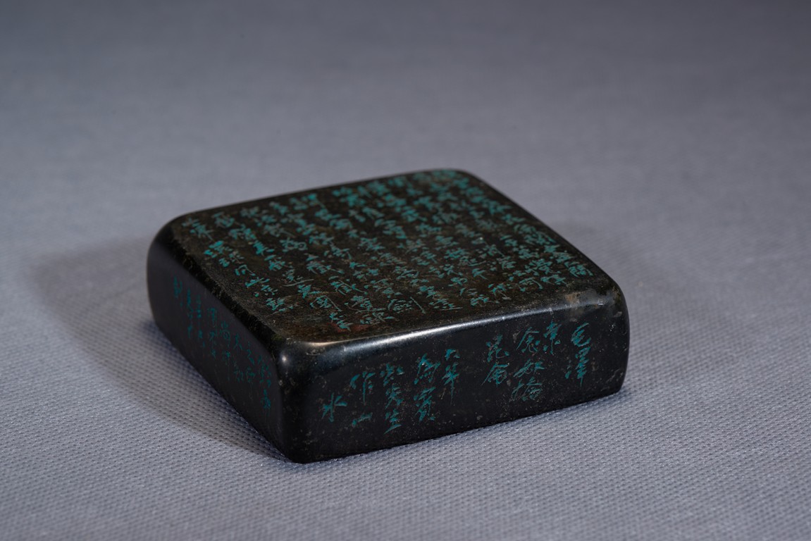 Of rectangular section, all sides incised with inscriptions. Qing Dynasty period.