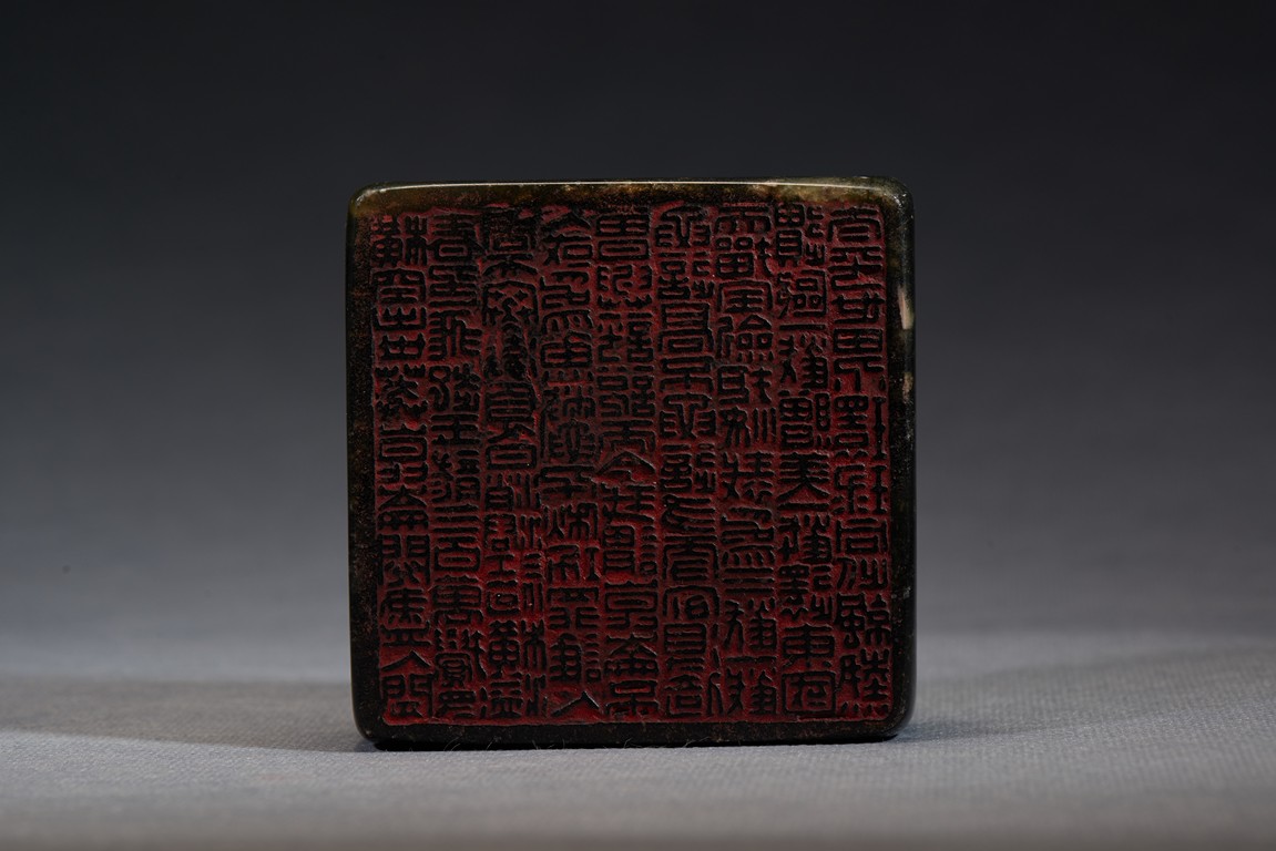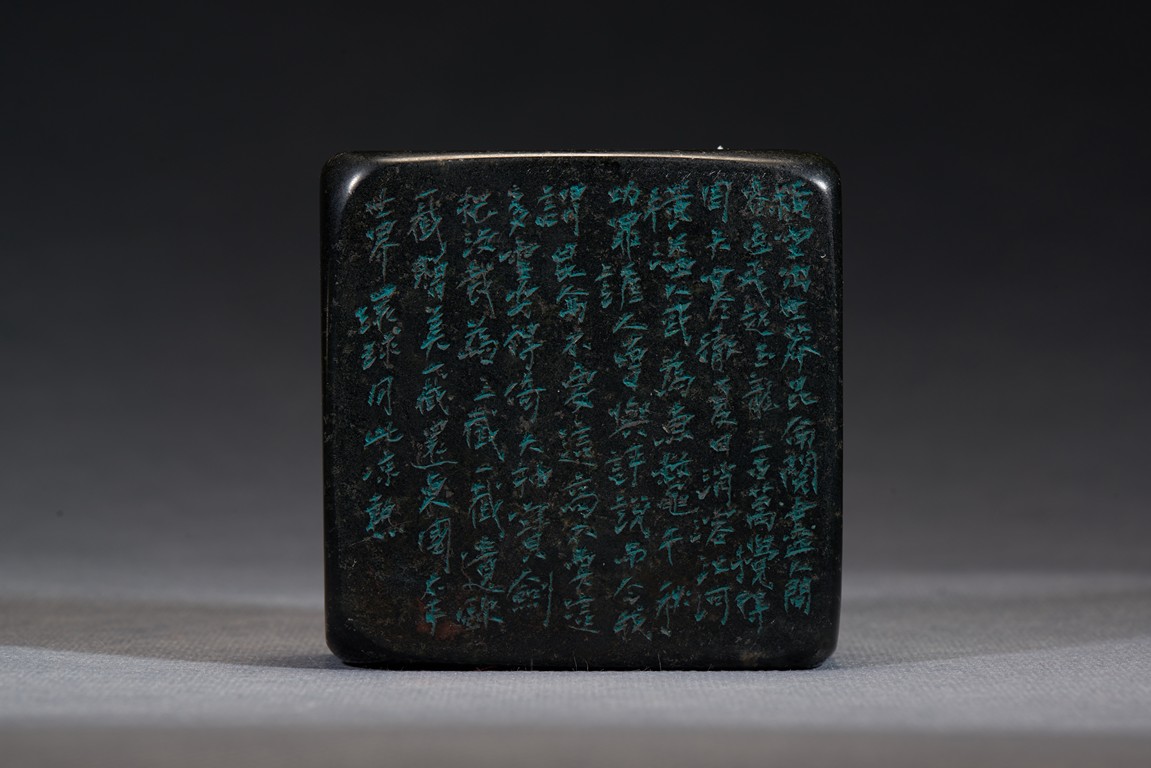 A STONE CARVED SEAL WITH INSCRIPTIONS 清 石雕名家詩文印