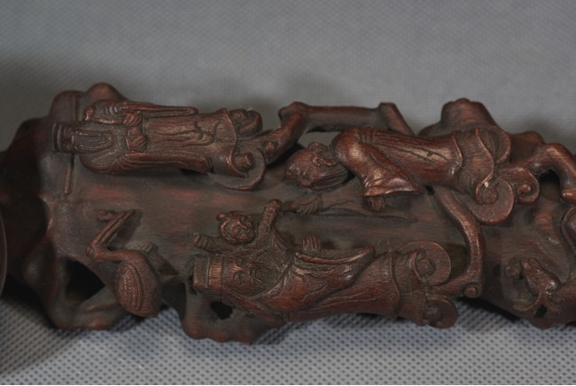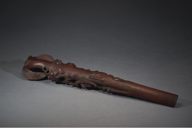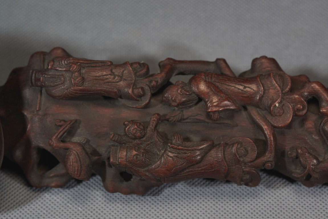 The ruyi head is modelled in the form of lingzhi ruyi head, the upper shaft finely carved with three immortals 'Fu', 'Lu' and 'Shou', all standing upon lingzhi heads from branches issuing from the lower end, a deer underneath them with head turned back.