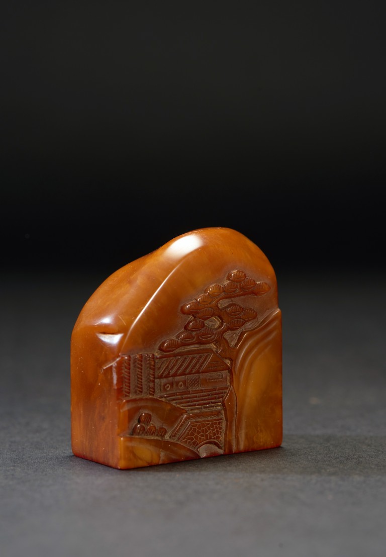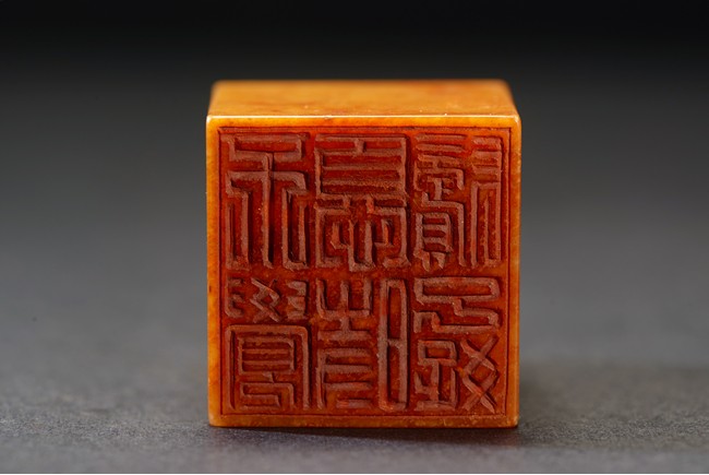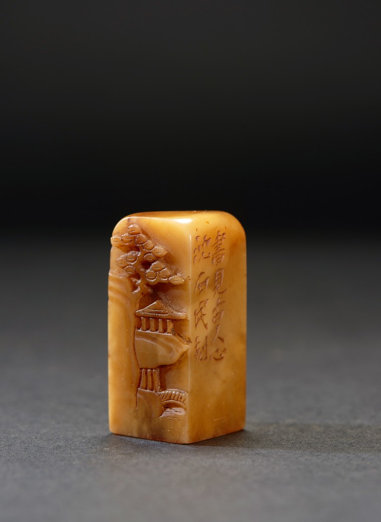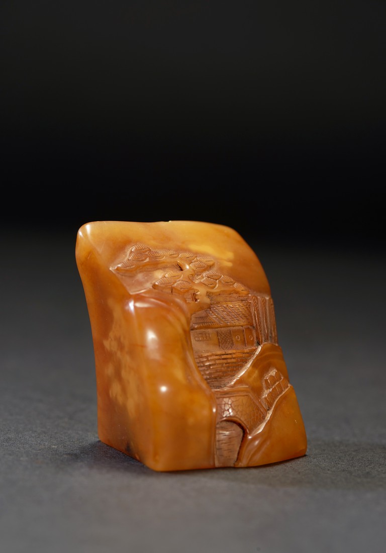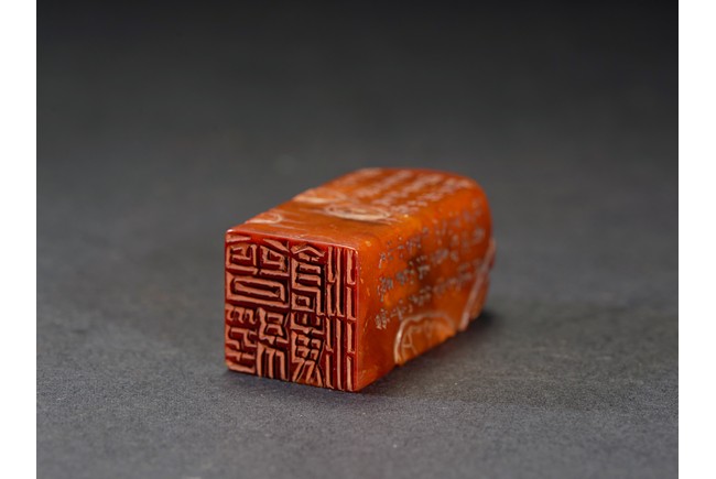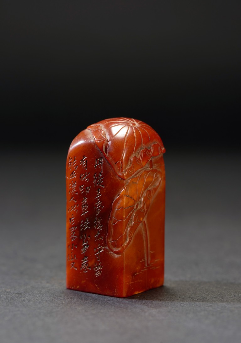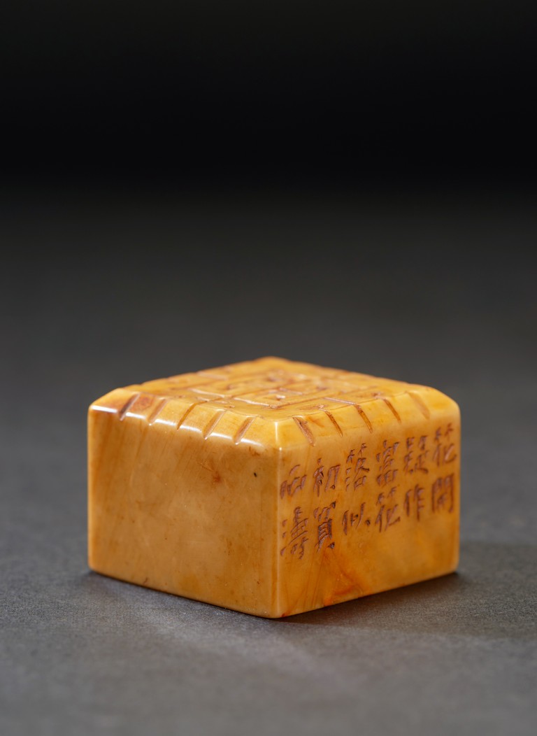 The group consists of twenty irregularly shaped jade seals with inscriptions, the base carved with mark.
