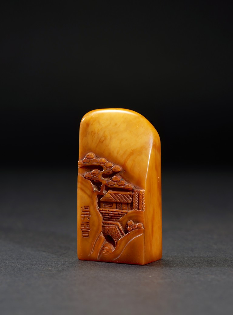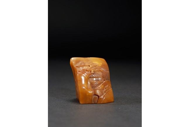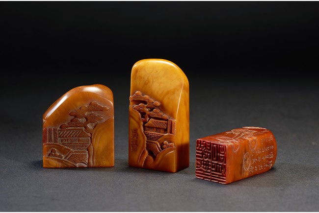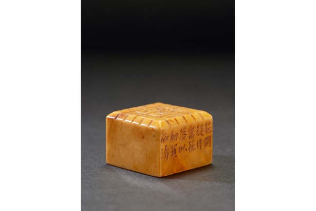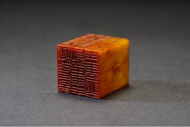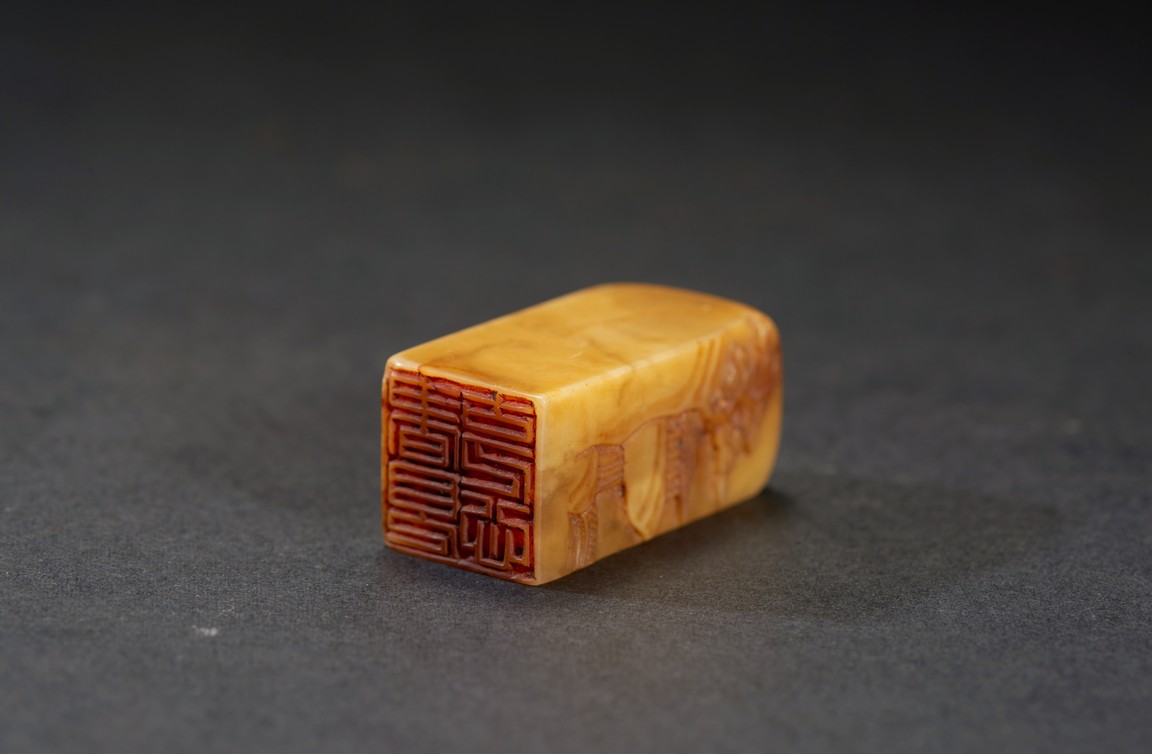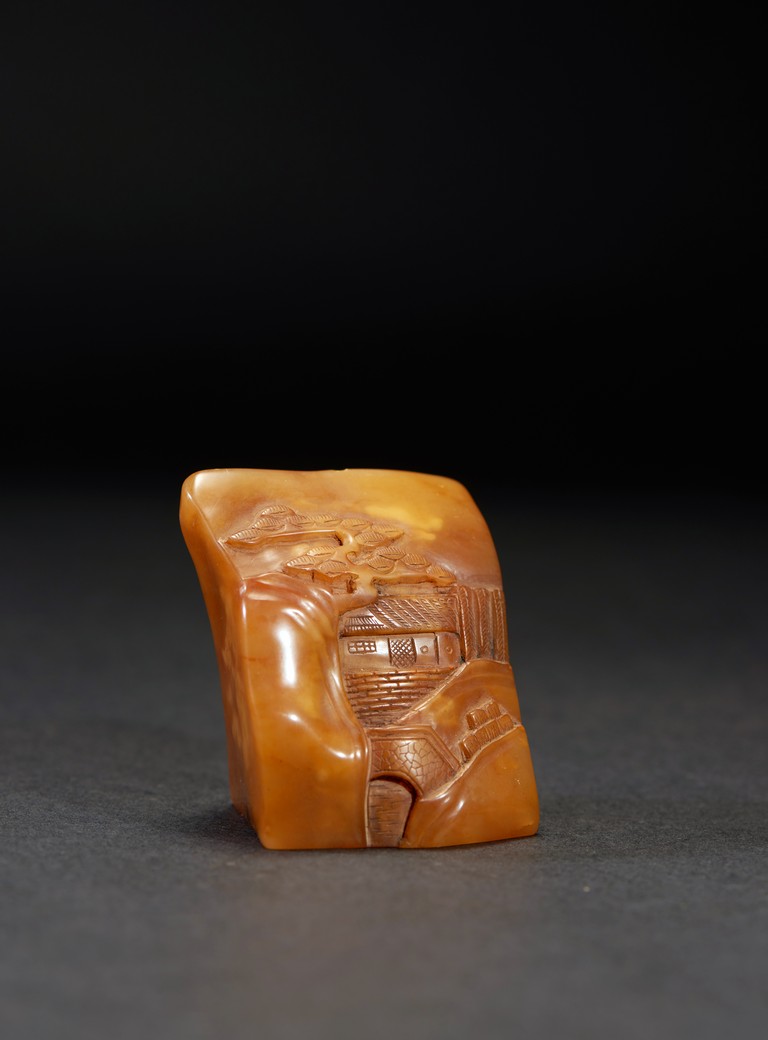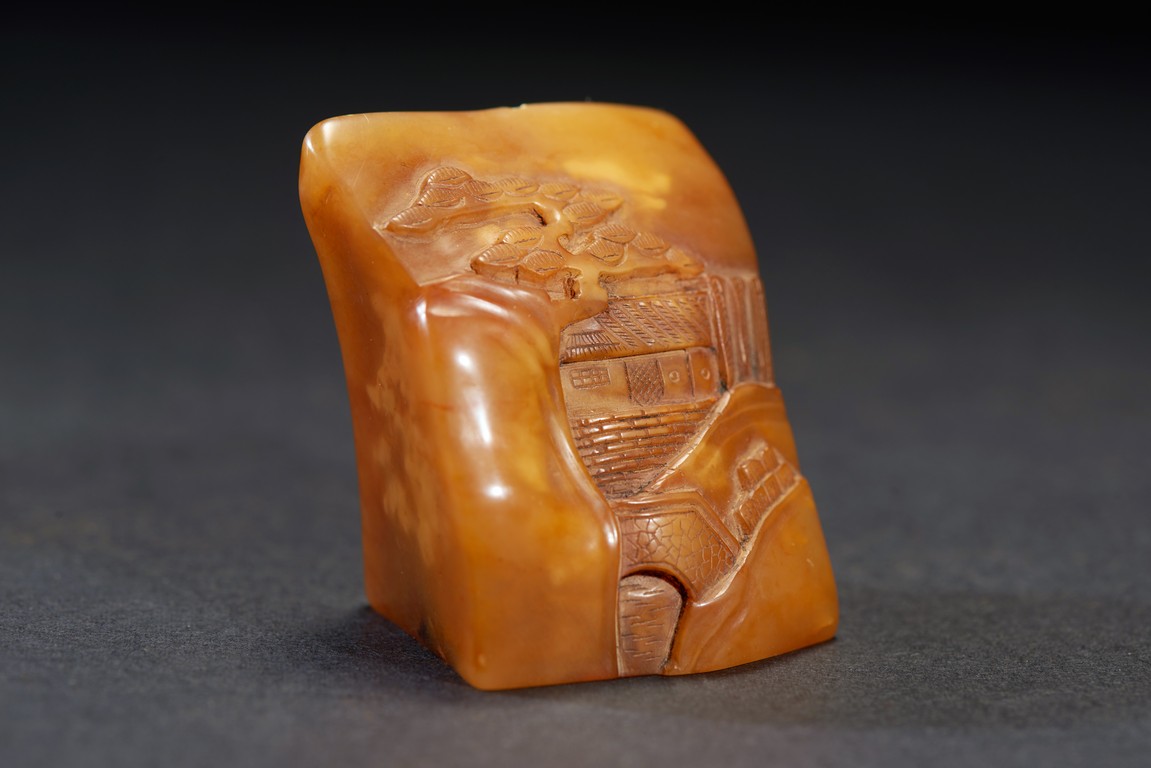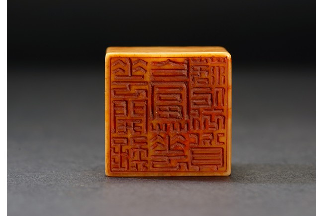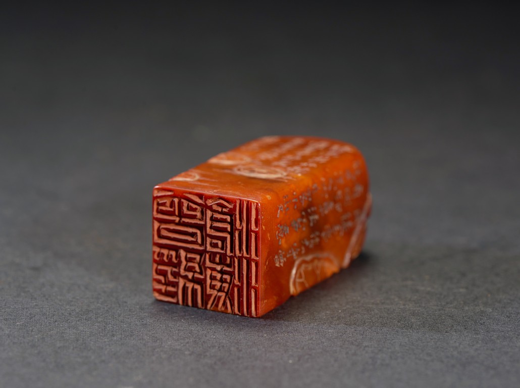 The group consists of twenty irregularly shaped jade seals with inscriptions, the base carved with mark.