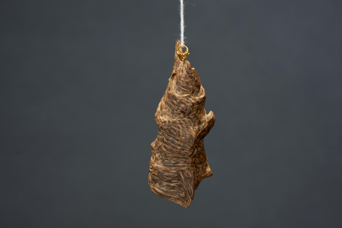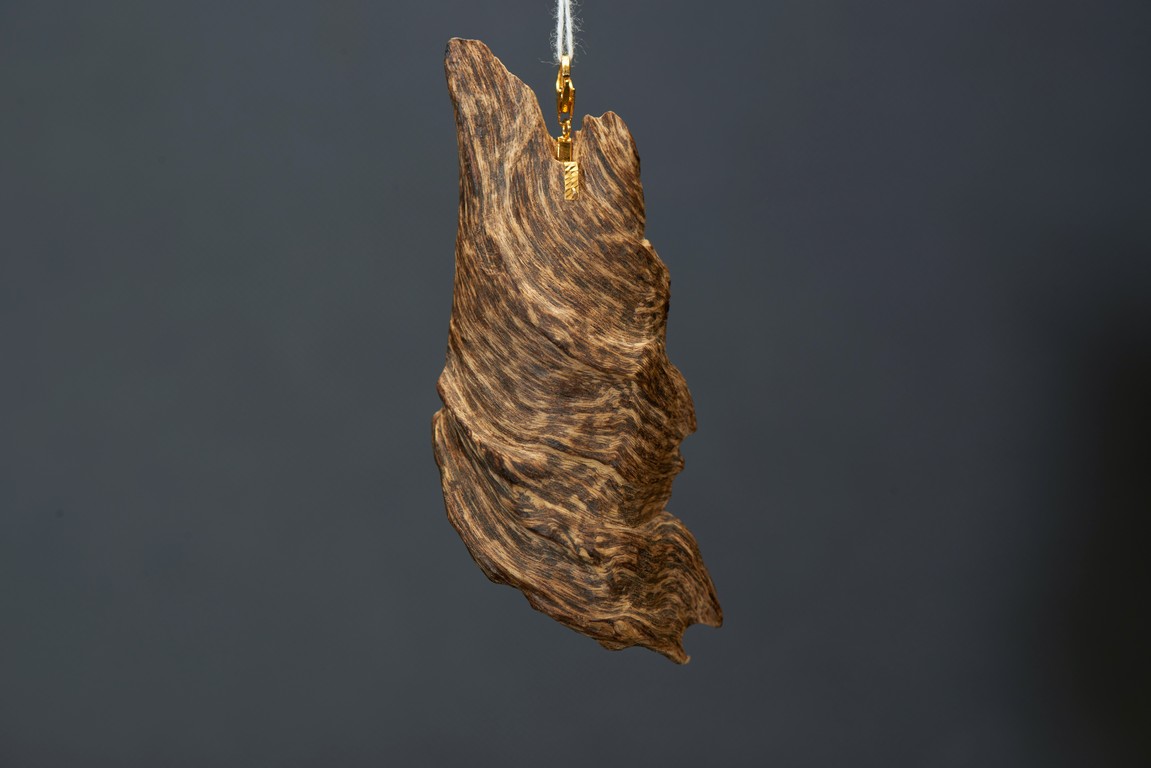 Of naturalistic form, the agarwood is modelled as pendant, with slight aroma.