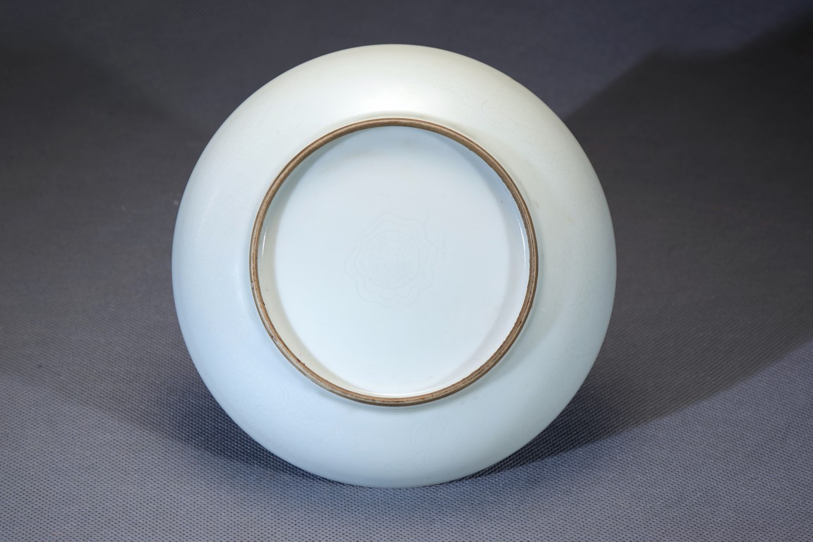 With rounded sides, the interior delicately incised with two phoenix joined head to tail enclosed in an double circle border, the exterior further decorated with an continuous sinuous dragon, the underside bears four character 'YONGLE' mark in seal script. Ming Dynasty period.
