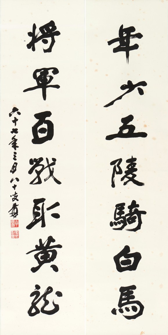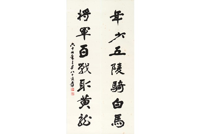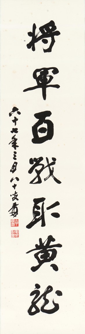Ink on paper. Running script calligraphy. Hanging scroll. Signed Yuan and with two seals of the artist.