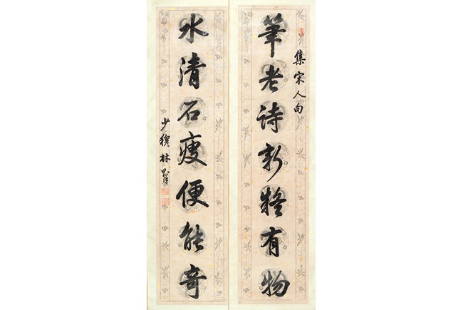 LIN ZEXU: INK ON PAPER COUPLET CALLIGRAPHY 林則徐 行書七言聯 箋本 鏡心