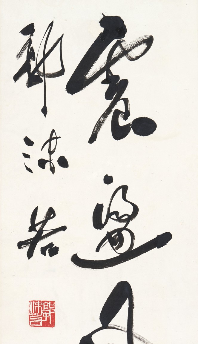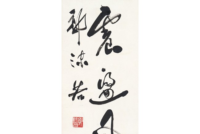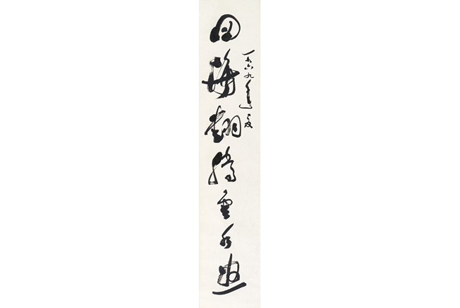 Ink on paper. Cursive script. Framed. Signed Guo Moruo and with one seal of the artist.