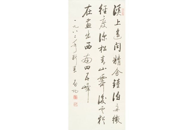 QI GONG: INK ON PAPER CALLIGRAPHY HANGING SCROLL 啟功 行書 紙本 立軸
