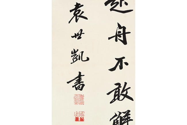 Ink on paper. Running script. Signed Yuan Shikai and with two seals of the artist. Attributed to Yuan Shikai.