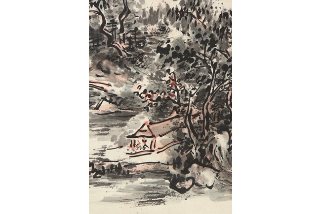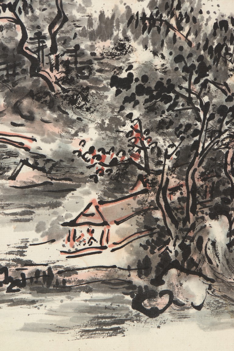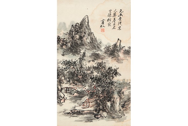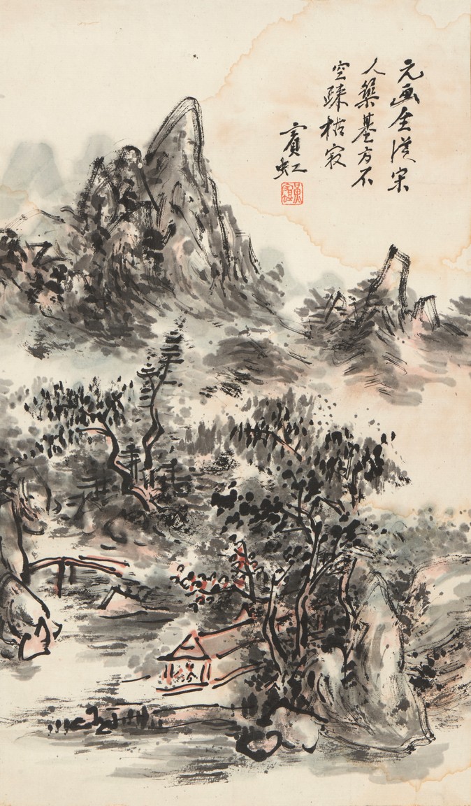 Ink and color on paper. Landscape. Hanging scroll. Signed Huang Binhong and with one seal of the artist.