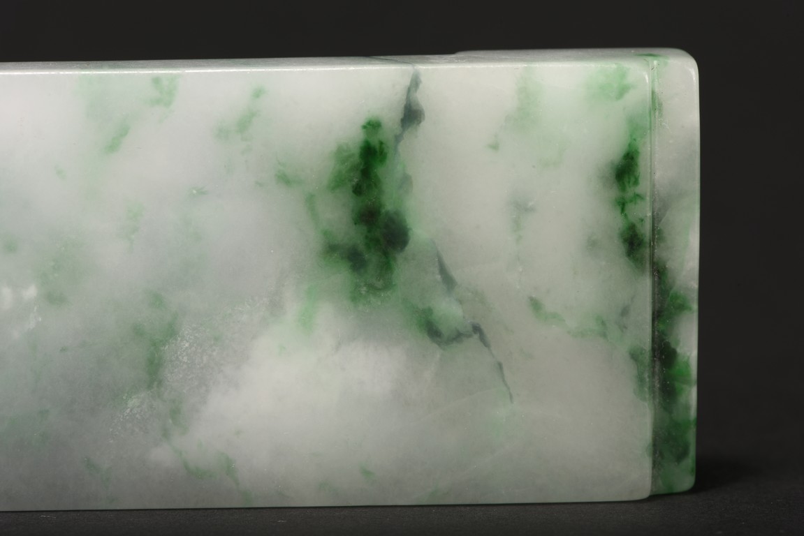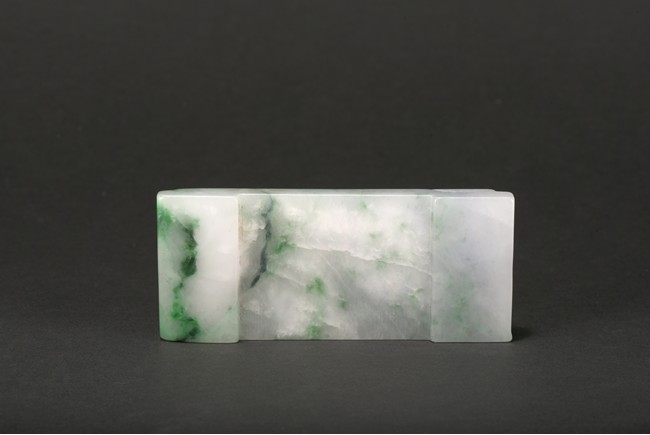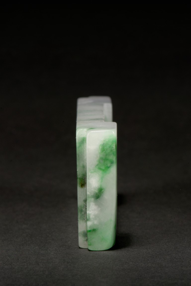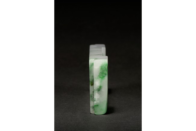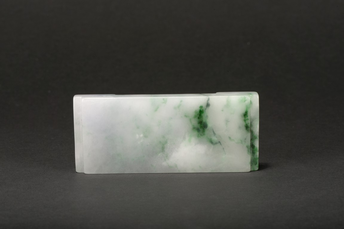 Of rectangular from, the stone is of translucent white tone with spinach green patches. Republic period.