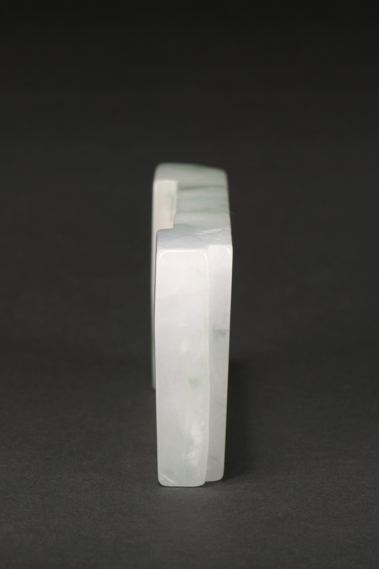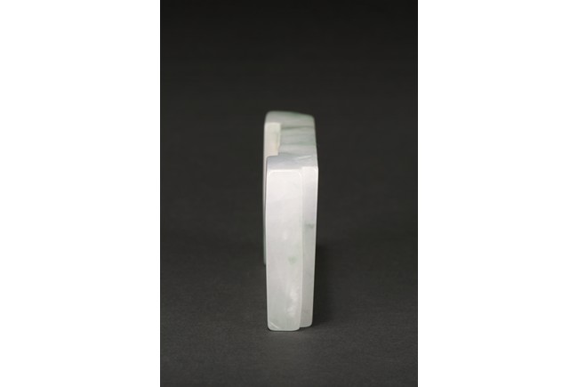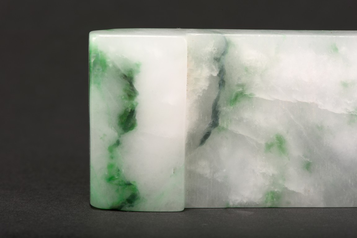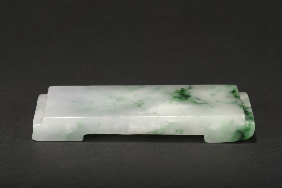 Of rectangular from, the stone is of translucent white tone with spinach green patches. Republic period.