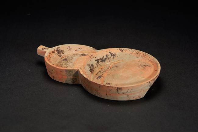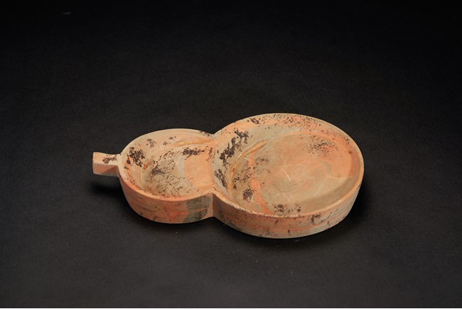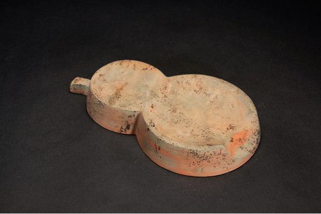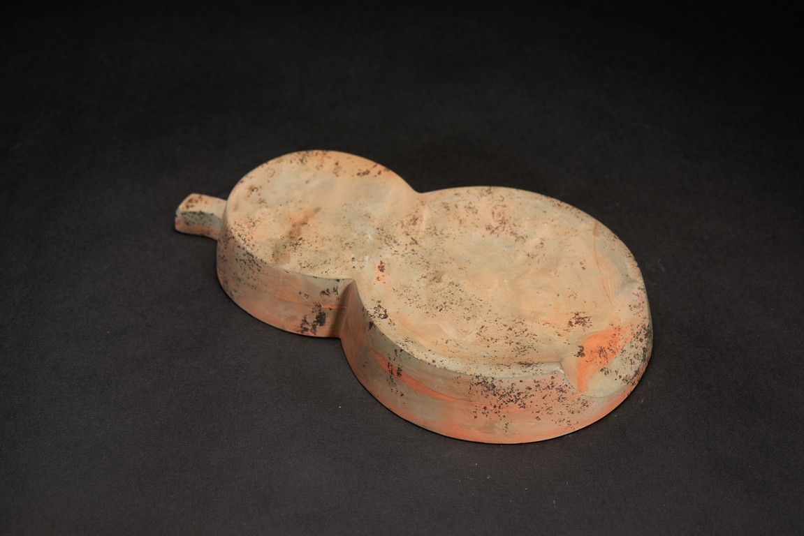 Naturalistically moulded into an flattened double-gourd shape, the interior well-hollowed.