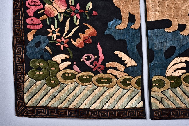 A PAIR OF EMBROIDERED SILK MILITARY OFFICIAL'S RANK BADGES 刺繡武官補子