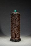 AN OPENWORK CARVED AGARWOOD INCENSE HOLDER