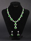 天然翡翠鑲鑽如意型項鍊和耳環一對