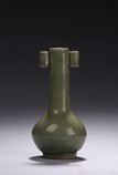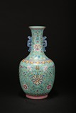 清 粉彩松石綠地纏枝紋雙耳瓶