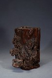 AN AGARWOOD 'FIGURES UNDER PINE TREE' BRUSHPOT
