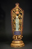 白玉雕觀音立像配銅鎏金鑲珊瑚八吉祥背光