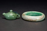 AN GOLD-WIRE JADEITE BANGLE AND TEAPOT