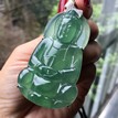 A LARGE GLASSY GREEN JADEITE GUANYIN PENDANT