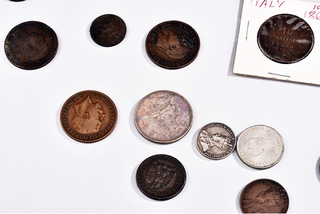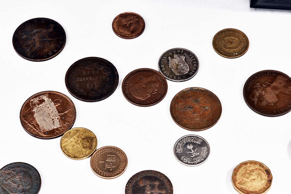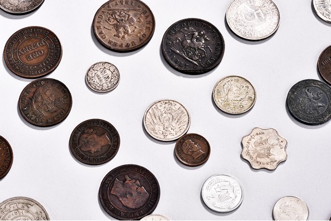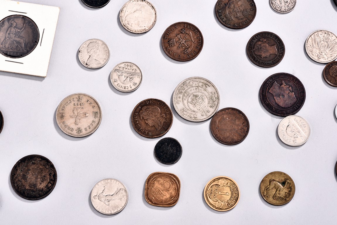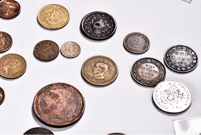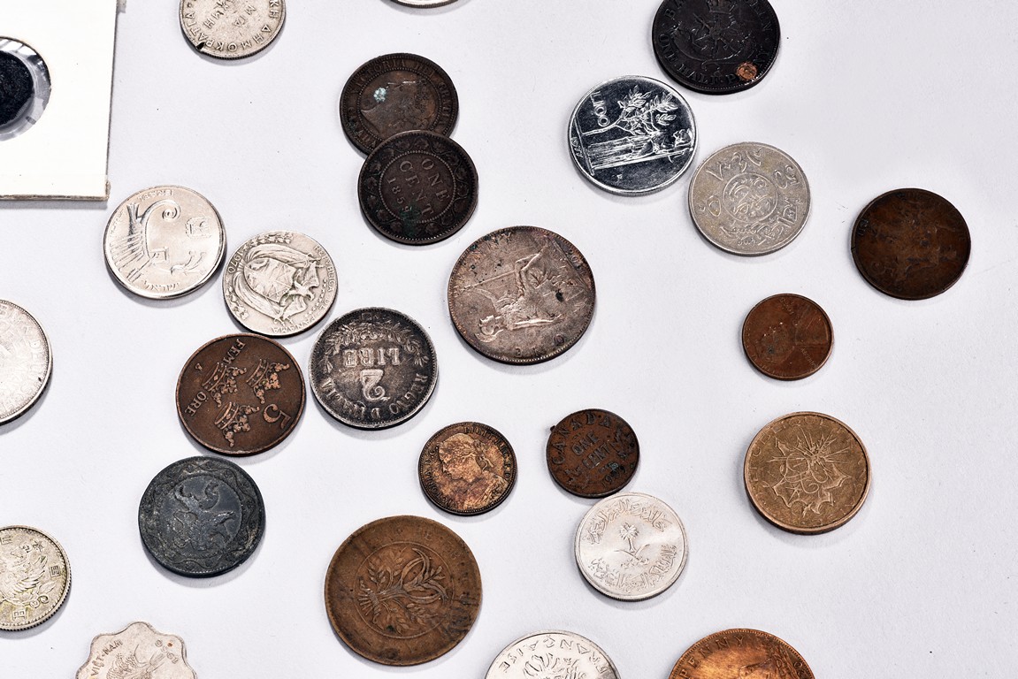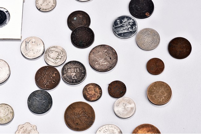 Group of vintage coins, including various types from American, Chinese and foreign countries.