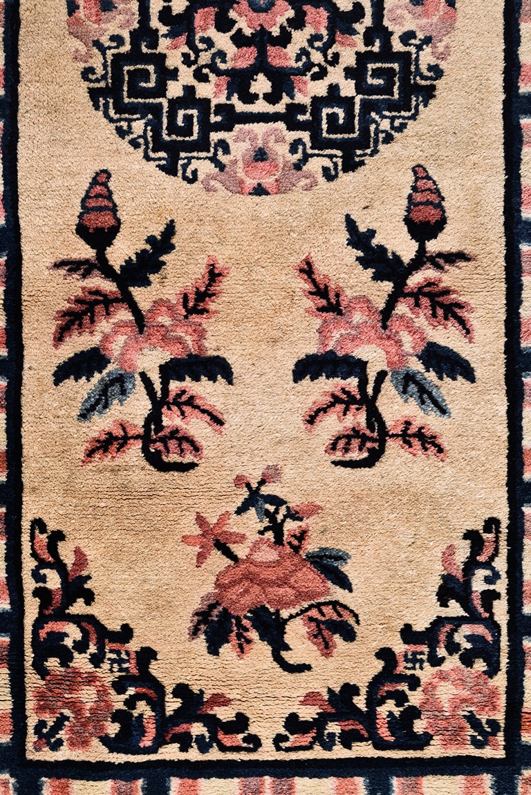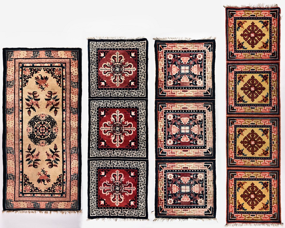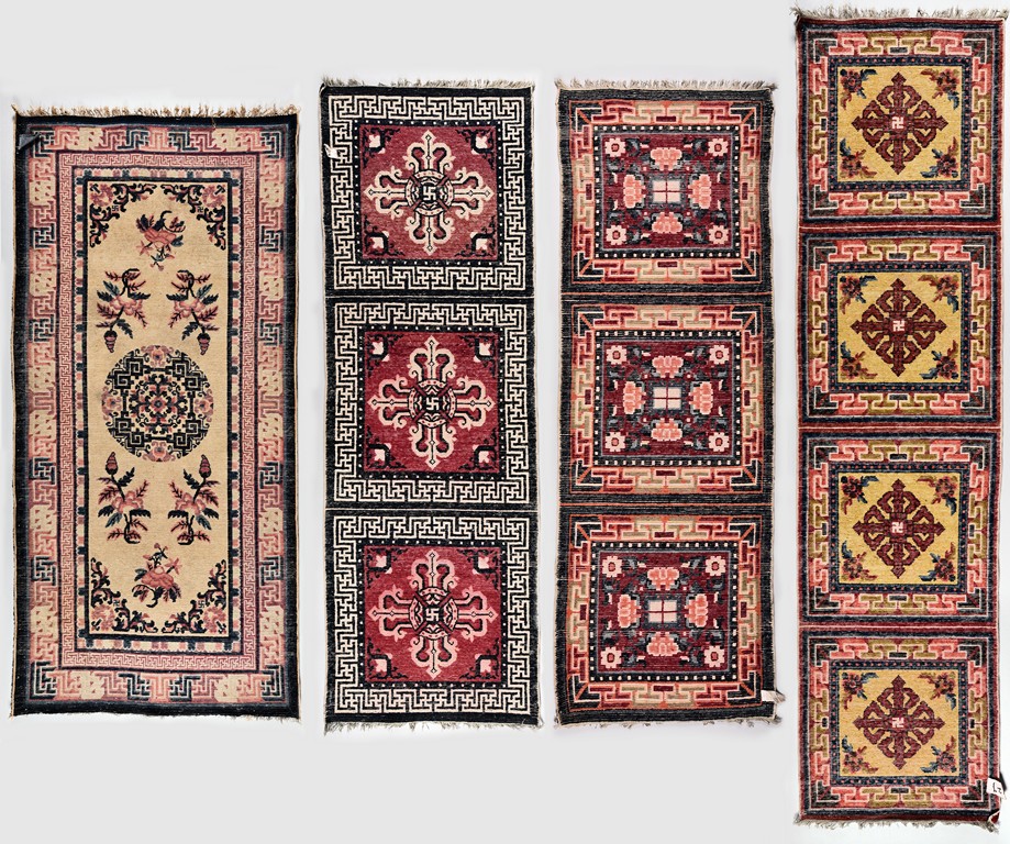 Each of rectangular form, with Buddhist swastika symbols and floral motifs.