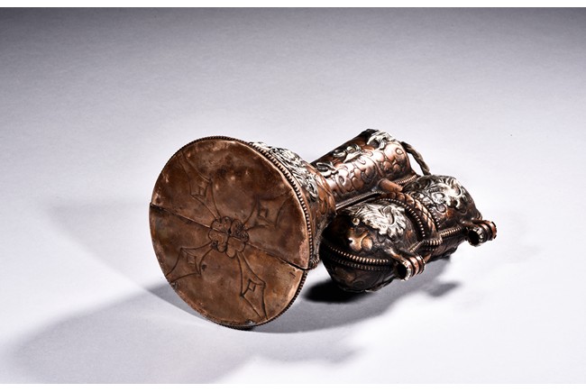 A BRONZE SILVER VAJRA, VAJRA BELL, AND CASE 銅法器 鈴鐺形