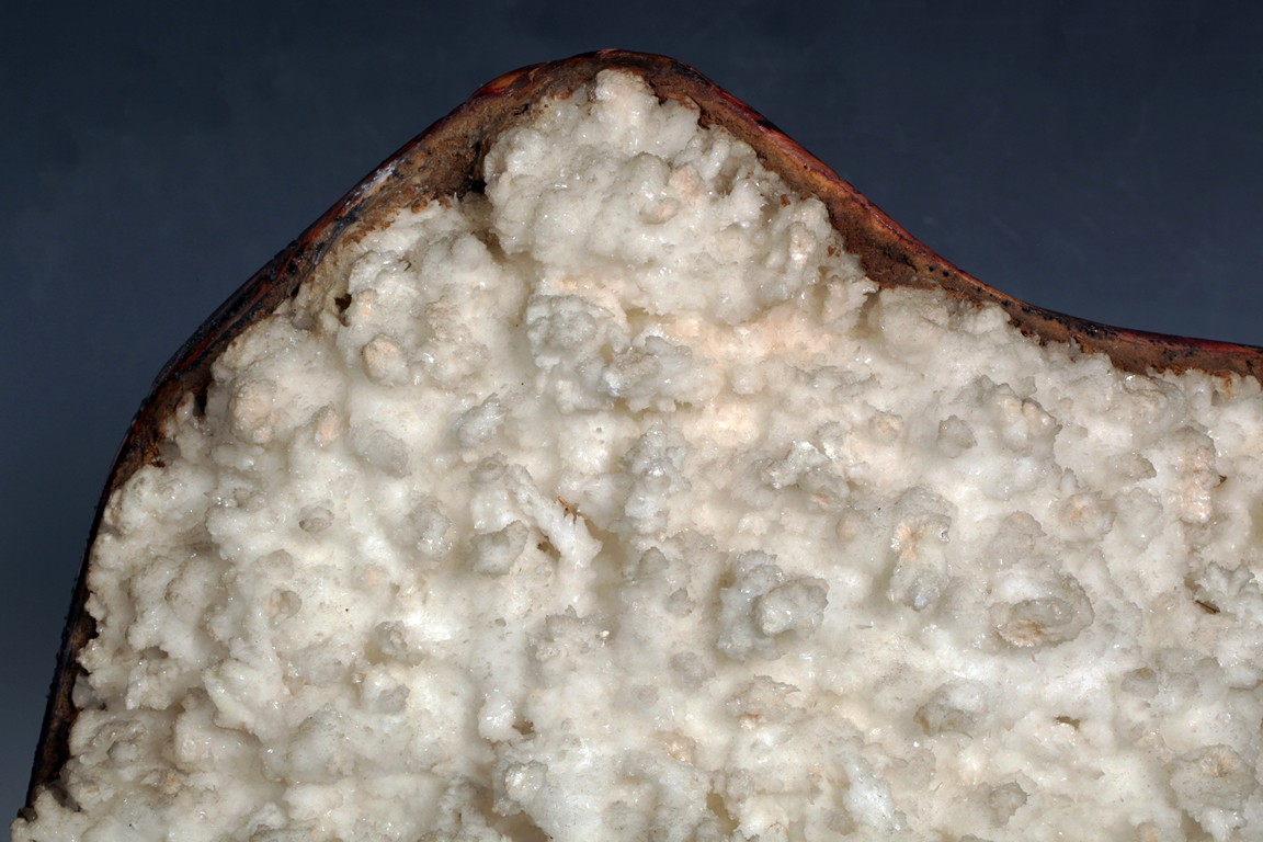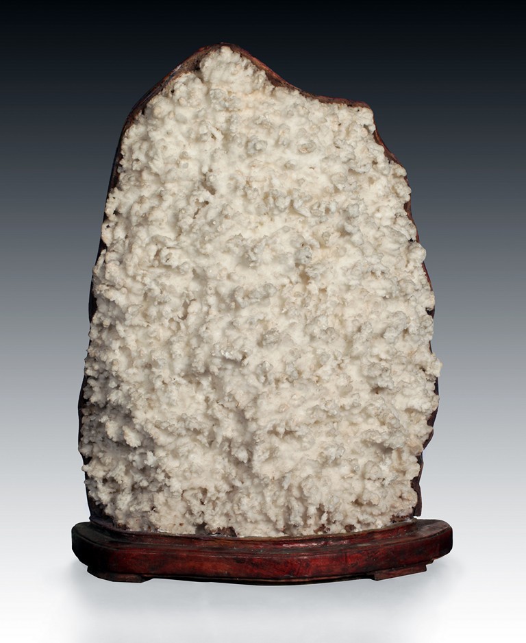 This beautiful naturalistic dolomite stone formation was set on a wooden stand, with the edge framed in wood as well.