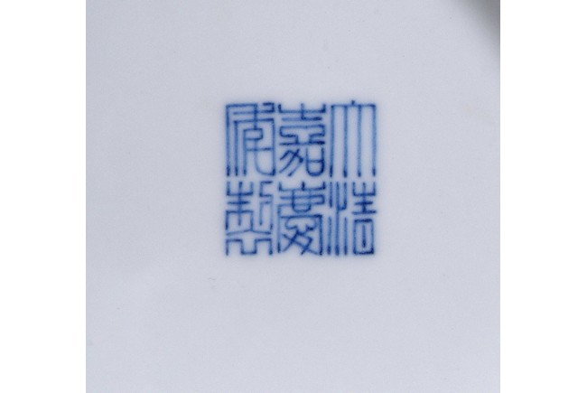 A tall Doucai bottle vase with designs of five clawed dragons and cloud between two bands of lotus petals and banana leaves. The vase is of bulbous form tapering to a cylindrical neck, with a round base. The bottom bears a six characters "JIAQING" mark.
